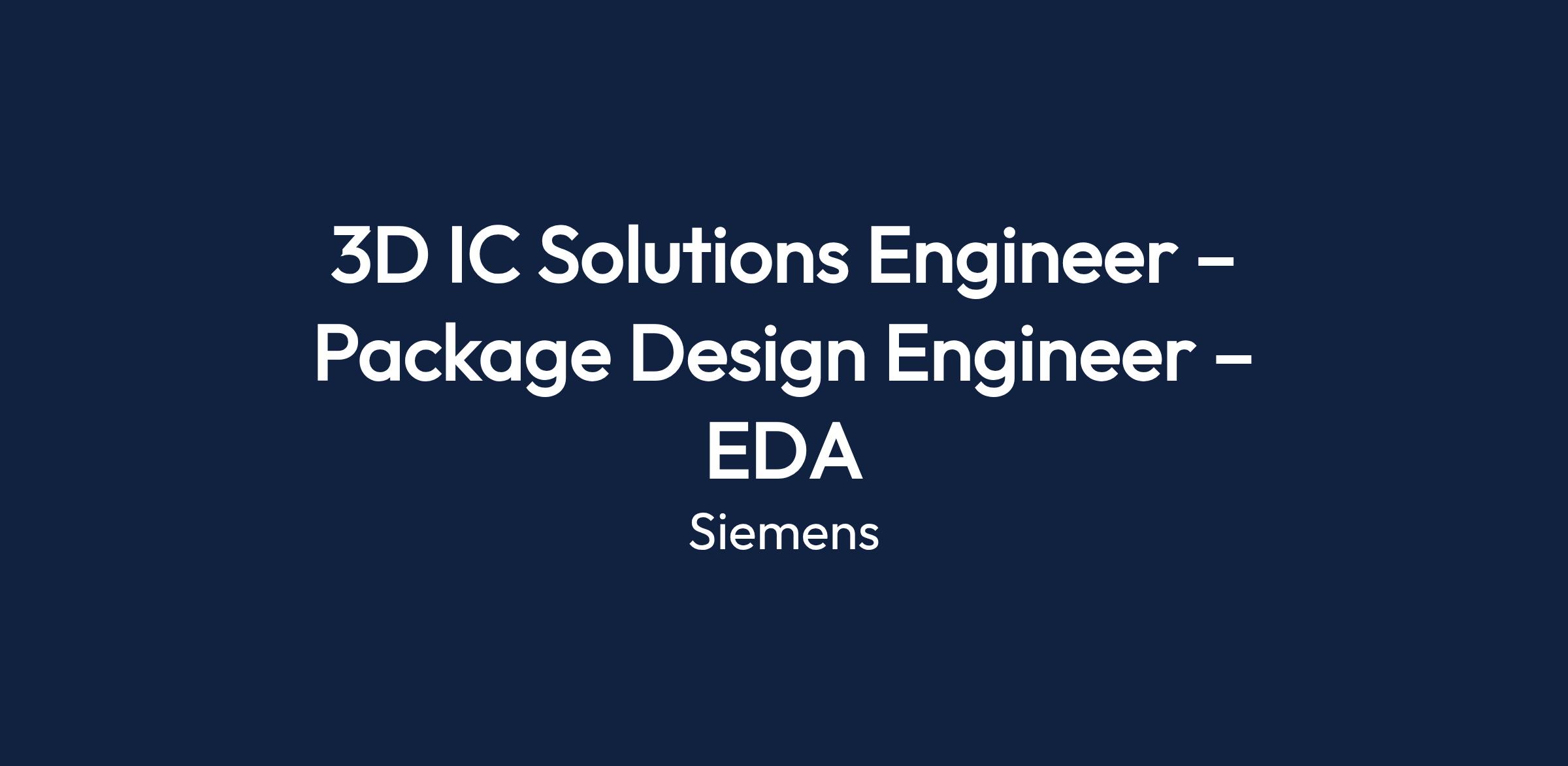 3D IC Solutions Engineer – Package Design Engineer – EDA