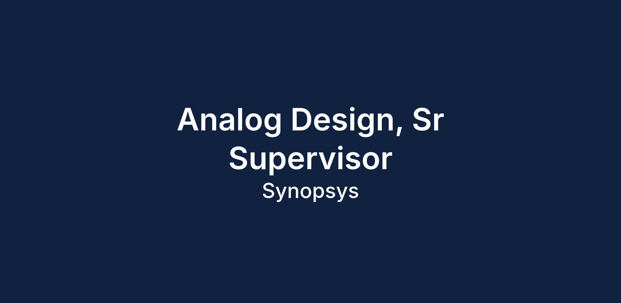 We are seeking an experienced Analog Design, Sr Supervisor to lead and manage design projects focused on analog design engineering. You will be responsible for overseeing design teams and ensuring high-quality output.