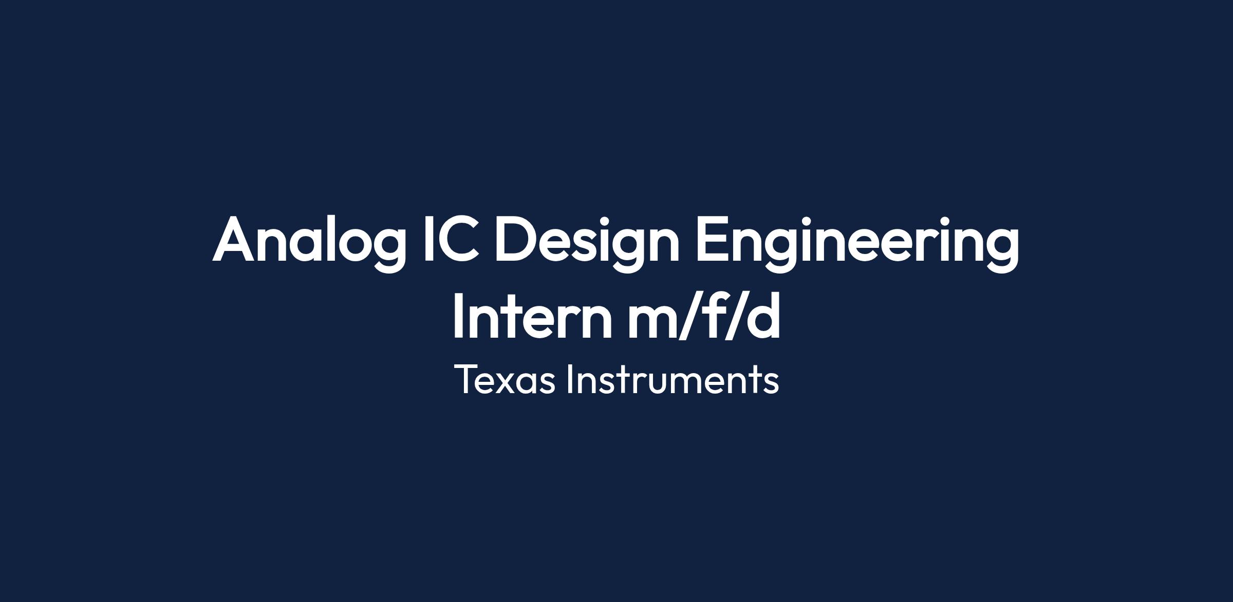 The Analog IC Design Engineering Intern will be involved in architecting new TI products and implementing analog circuits. This role provides the opportunity to work on various projects in automotive, power supply, and more.