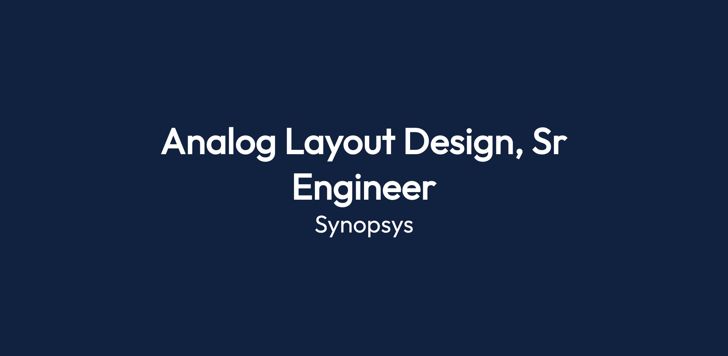 Analog Layout Design, Sr Engineer