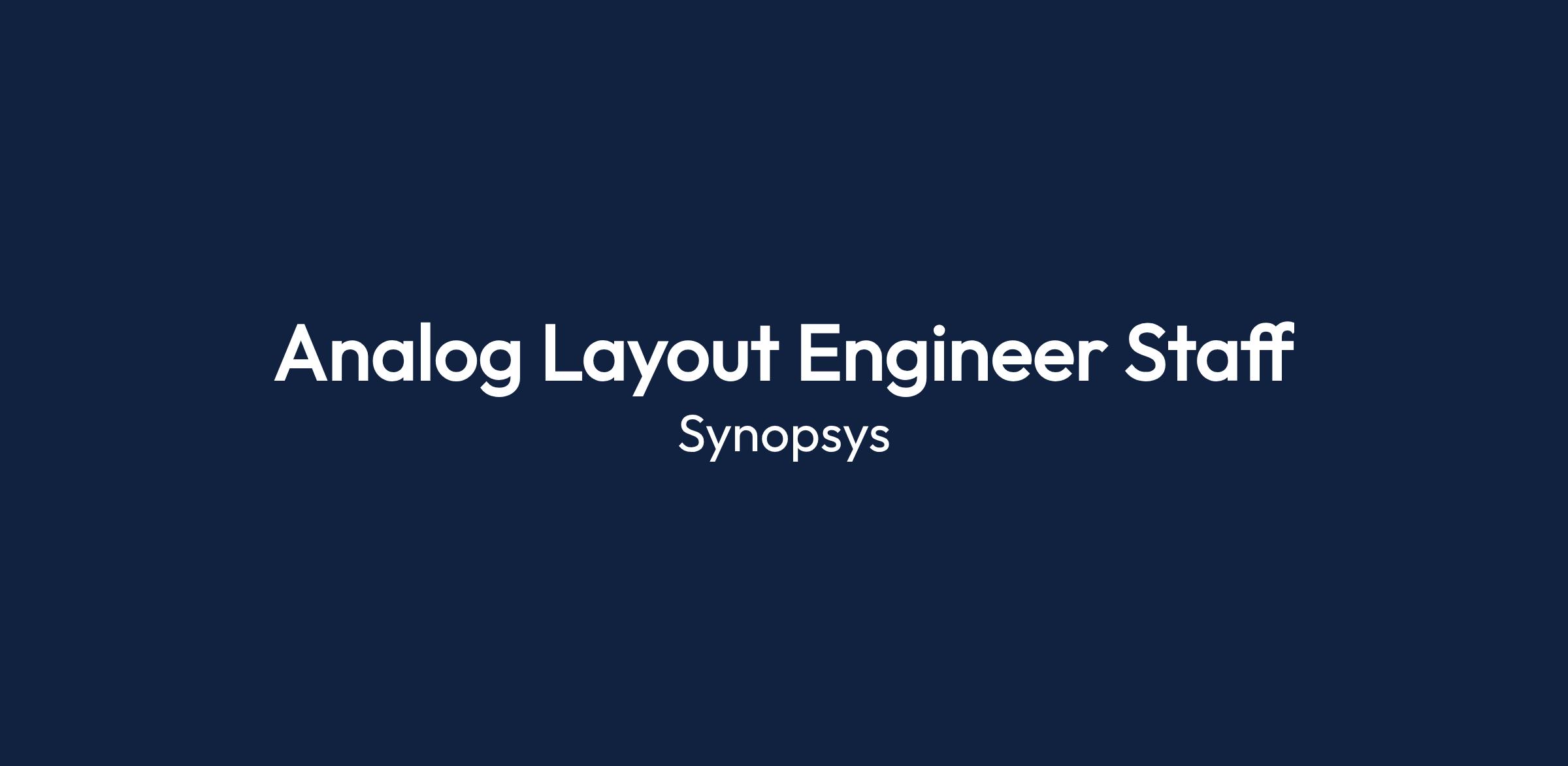 As an Analog Layout Engineer Staff at Synopsys, you will work on custom layout design of high-performance Analog IPs, collaborating with global teams to drive innovations in chip design and verification.