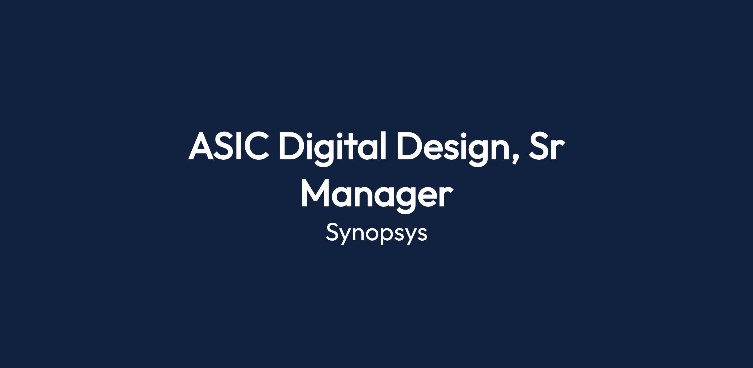 The ASIC Digital Design, Sr Manager will lead and manage a team focused on digital design within the ASIC domain. This role is crucial for developing innovative solutions and ensuring efficient project execution.