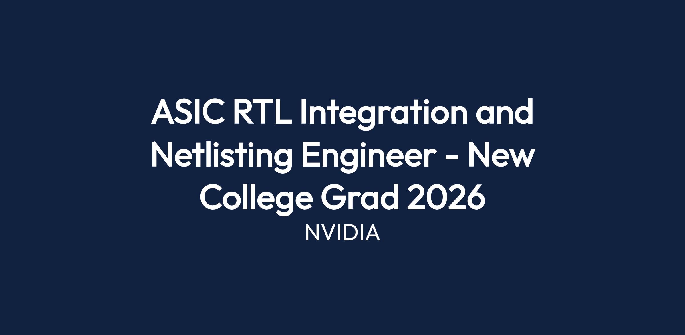 ASIC RTL Integration and Netlisting Engineer - New College Grad 2026