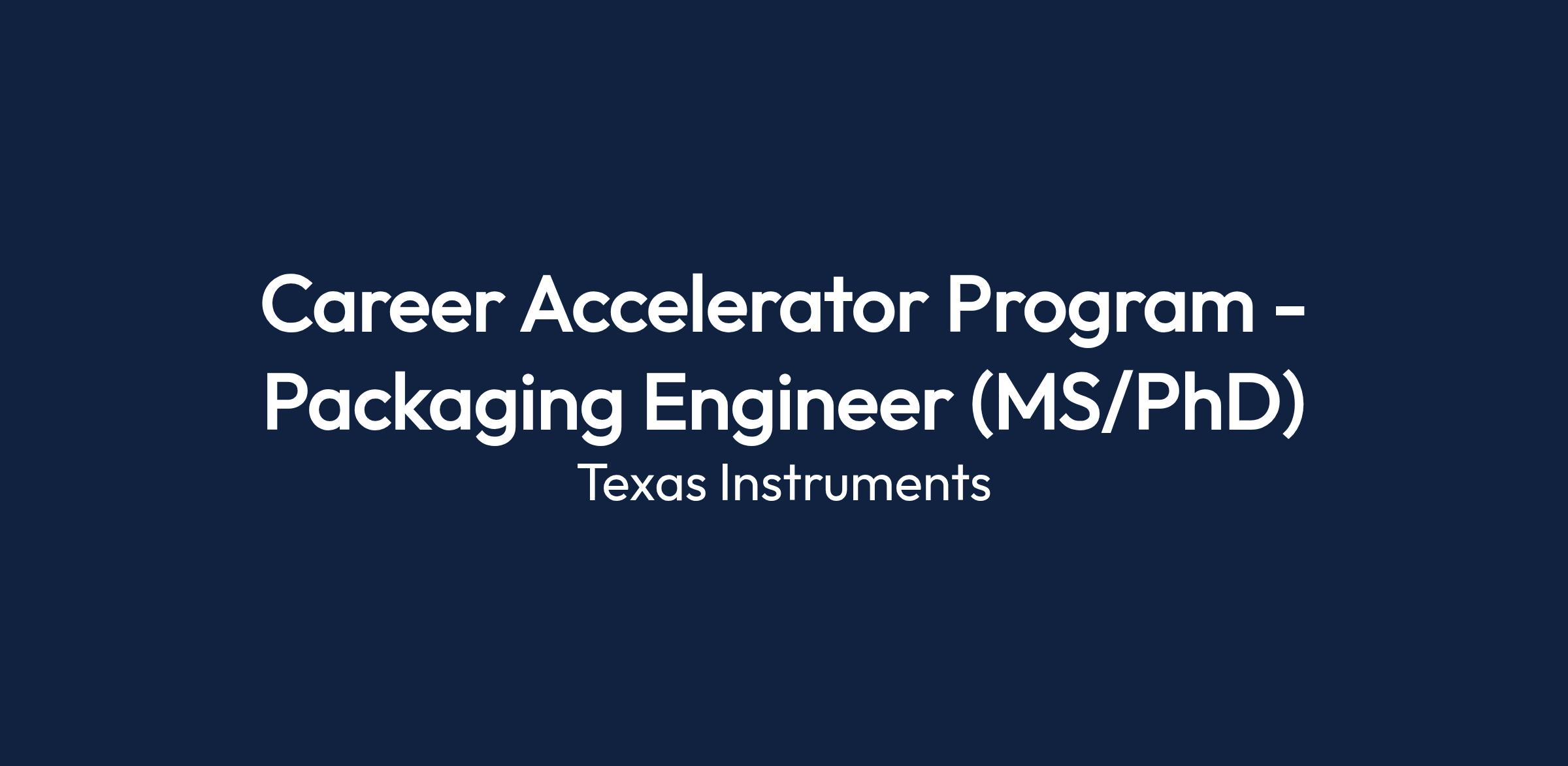 Career Accelerator Program - Packaging Engineer (MS/PhD)