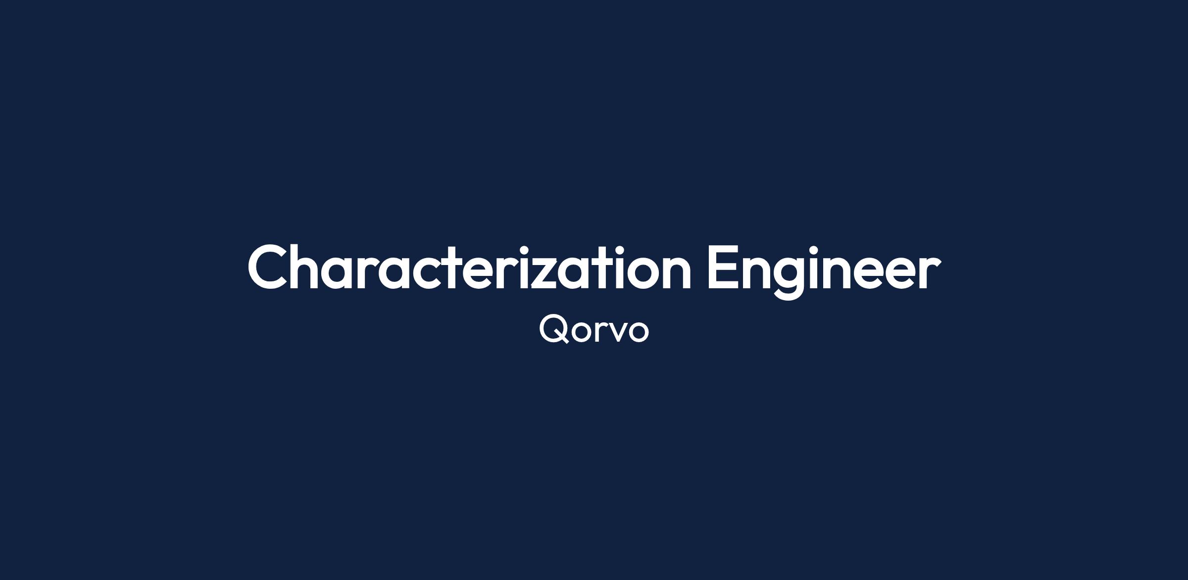 The Characterization Engineer is the primary technical resource responsible for core level validation and characterization of new Power Management products (ICs) developed by Qorvo.