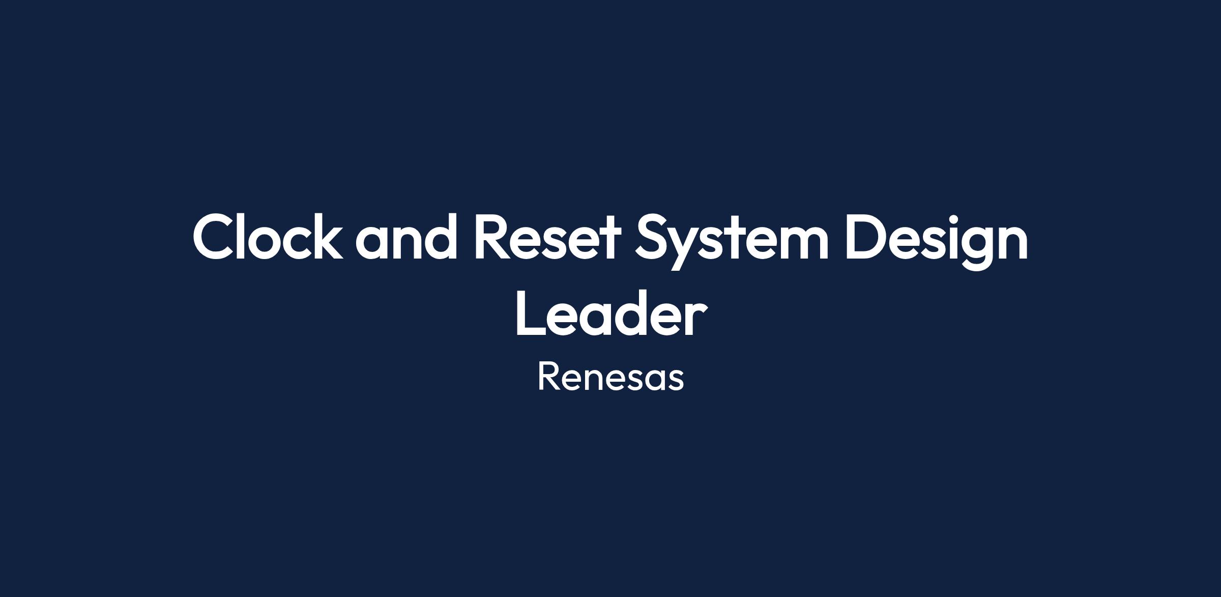 Clock and Reset System Design Leader