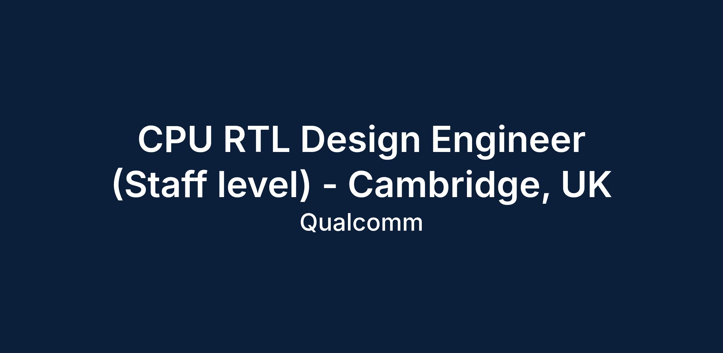 Cambridge is Qualcomm's largest office in the UK, with about 400 team members including engineers, business strategists and support staff. From an engineering perspective, we have teams focussing on: RF and PMU analog design, digital design & verification, digital physical design, embedded software, packaging and post-silicon validation. Target products include: high performance CPUs and GPUs, ultra-low power IoT devices, and wearables such as smart glasses, smart watches and earbuds.