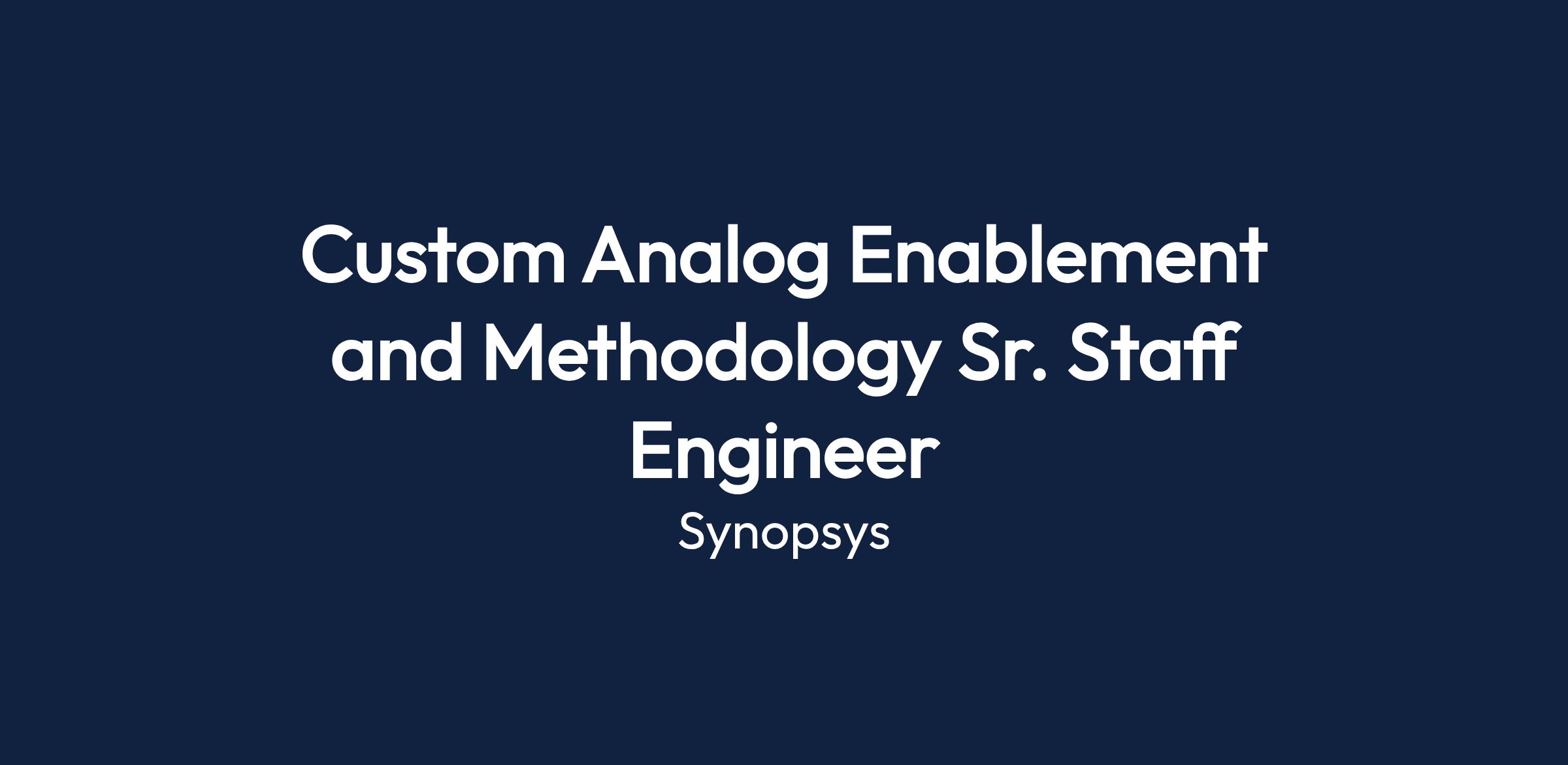The Custom Analog Enablement and Methodology Sr. Staff Engineer at Synopsys will focus on advancing layout design techniques and methodologies within the semiconductor industry. This role involves collaborating with global teams to enhance design environments and methodologies.
