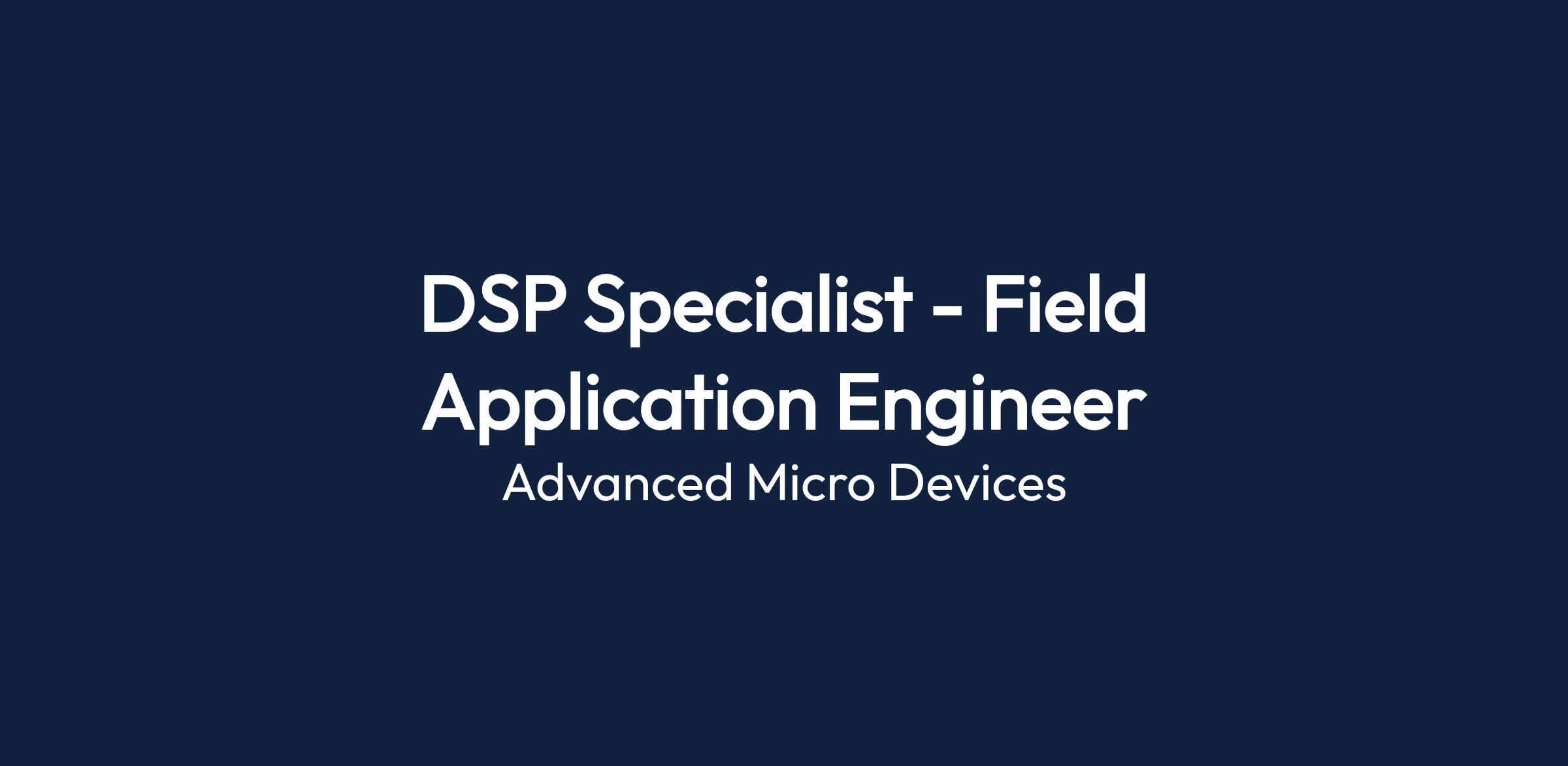 The DSP Specialist - Field Application Engineer will handle DSP-based designs to support AMD Embedded customers. This remote role allows candidates from any US city close to an airport, preferably within the Southwestern US, to apply.