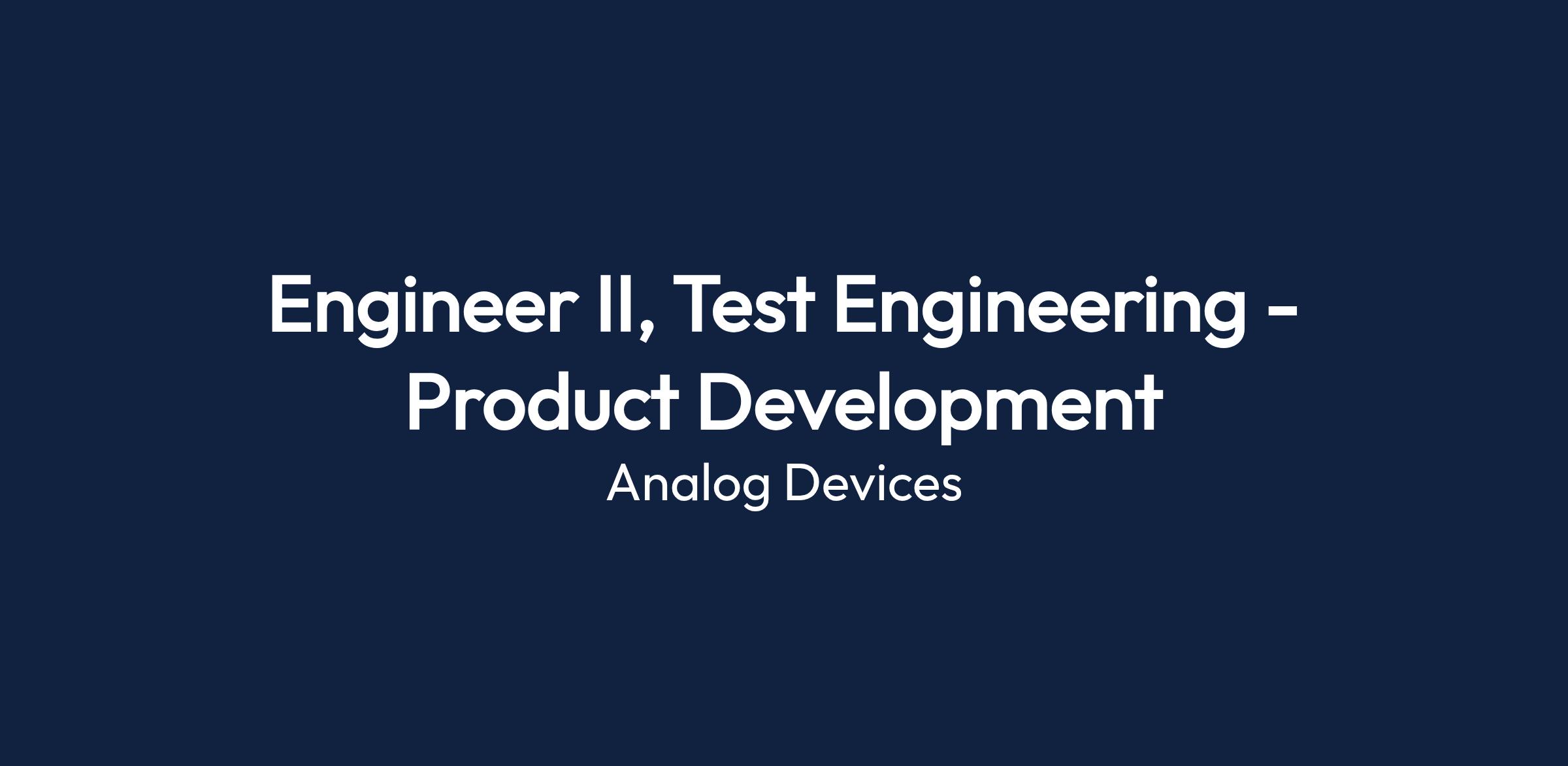 Engineer II, Test Engineering - Product Development