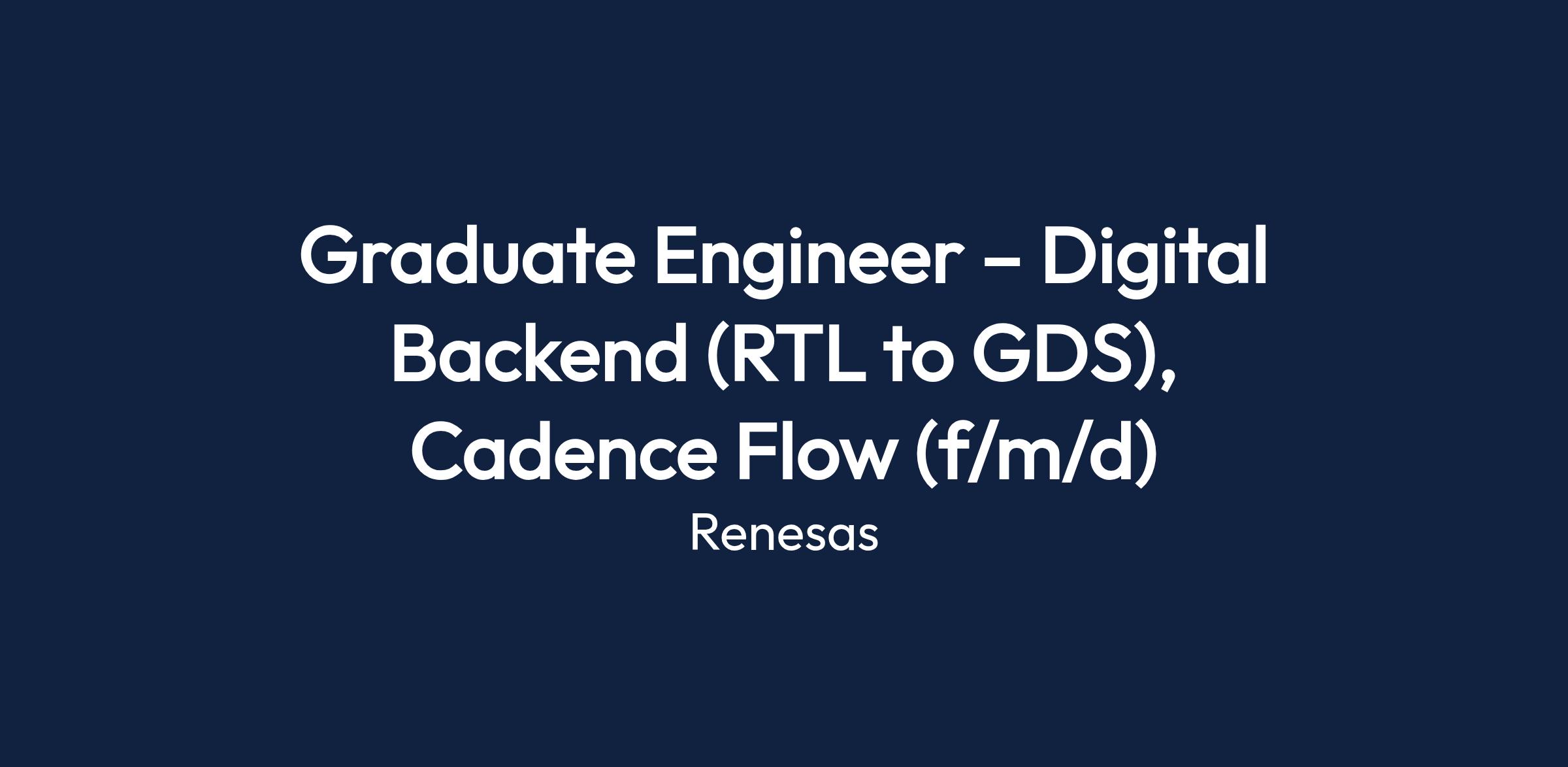 The Graduate Digital Backend Engineer will engage in the physical implementation of complex SoC and mixed-signal designs. The position involves working with a seasoned backend team to convert RTL code into a GDSII database using the Cadence tool suite, covering the entire backend workflow.