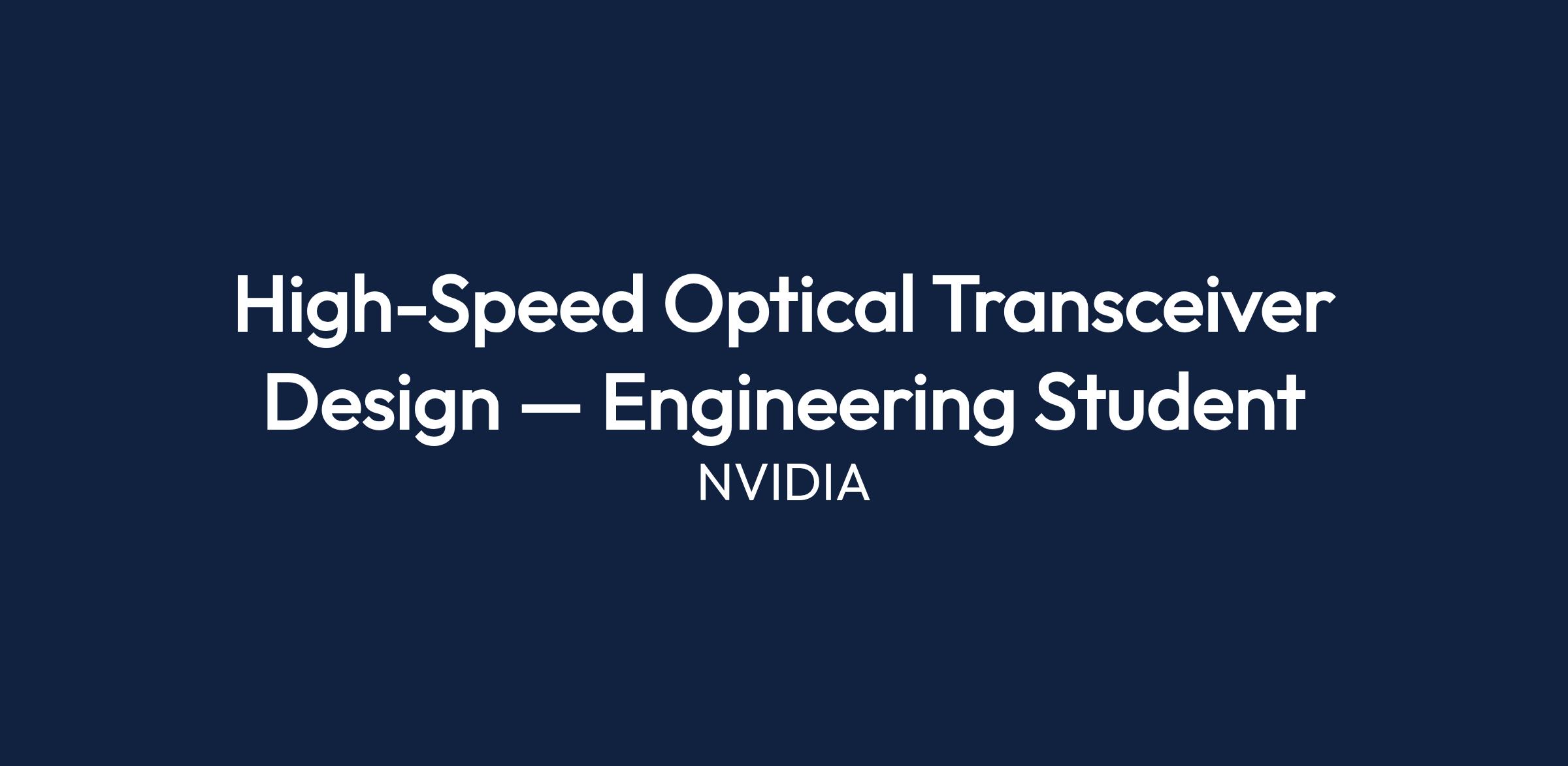 This is an engineering student / internship role supporting design and test of high-speed optical transceivers at NVIDIA's Yokneam site. The role assists senior designers and test engineers on tasks related to component evaluation, lab measurements, simulation, and documentation.