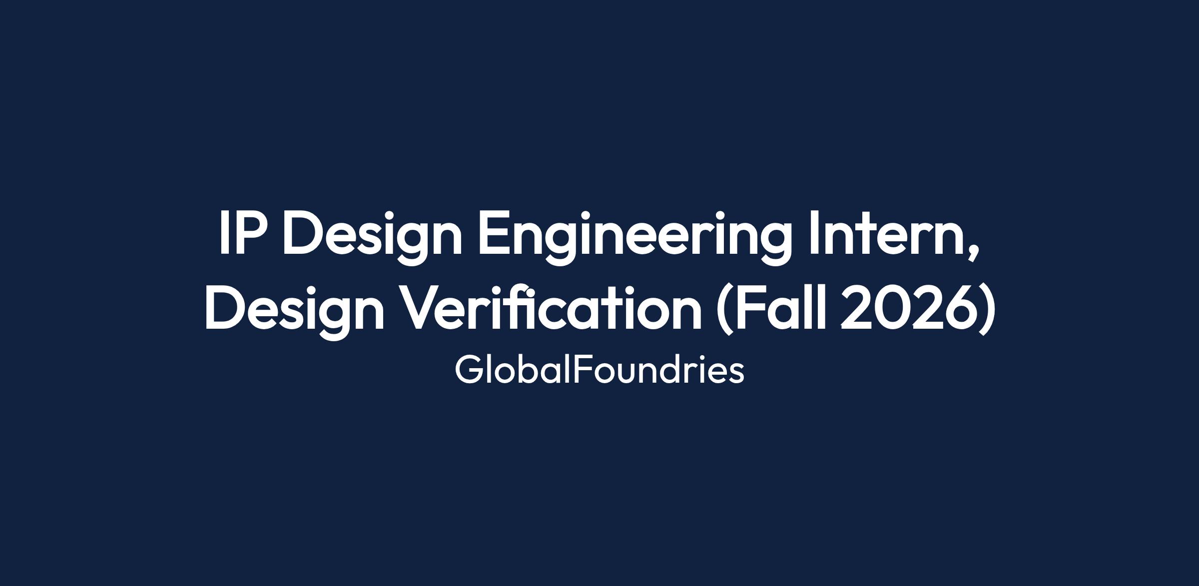 IP Design Engineering Intern — Design Verification (Fall 2026)