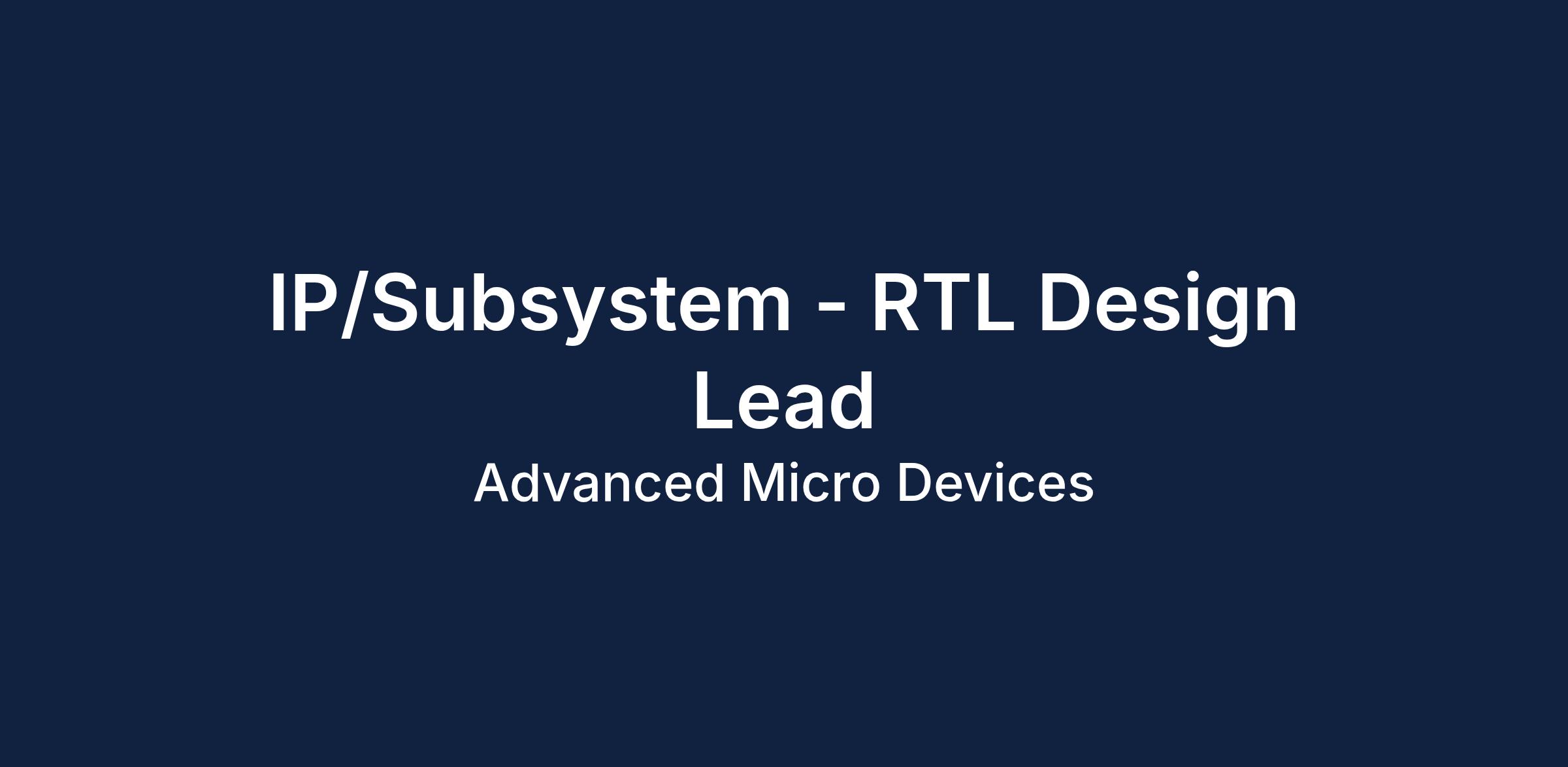 - Design of IP and subsystems with integration of AMD and other 3rd party IPs.