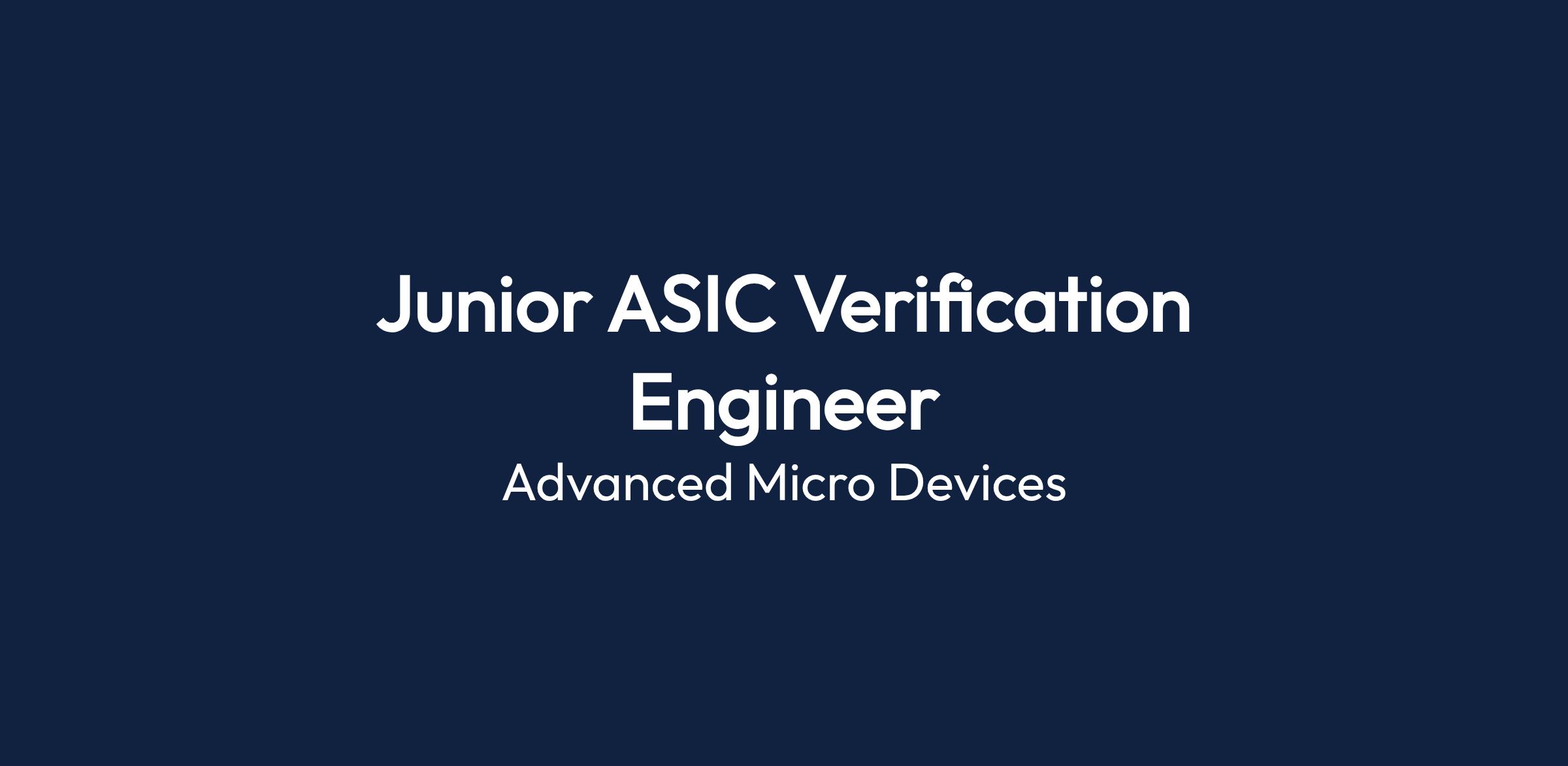 The position involves working as a Junior ASIC Verification Engineer at Advanced Micro Devices (AMD) in Santa Clara, California. The candidate will be part of the NTSG team focused on enhancing AMD’s data center networking technologies through ASIC verification.