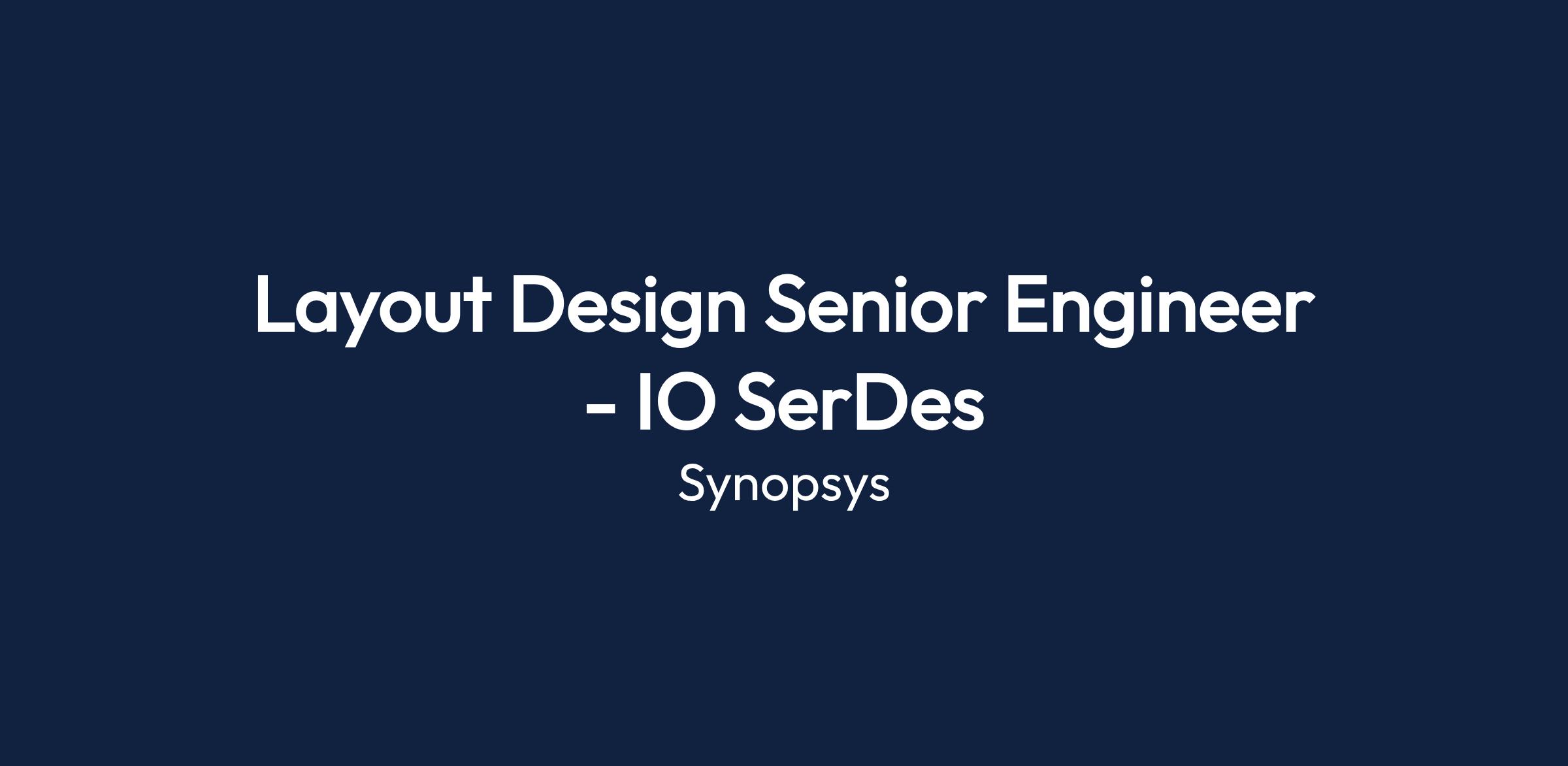 The role involves working as a Layout Design Senior Engineer focusing on IO SerDes at Synopsys. The position will require the individual to engage in layout designs for advanced semiconductor technologies, emphasizing high-performance devices.