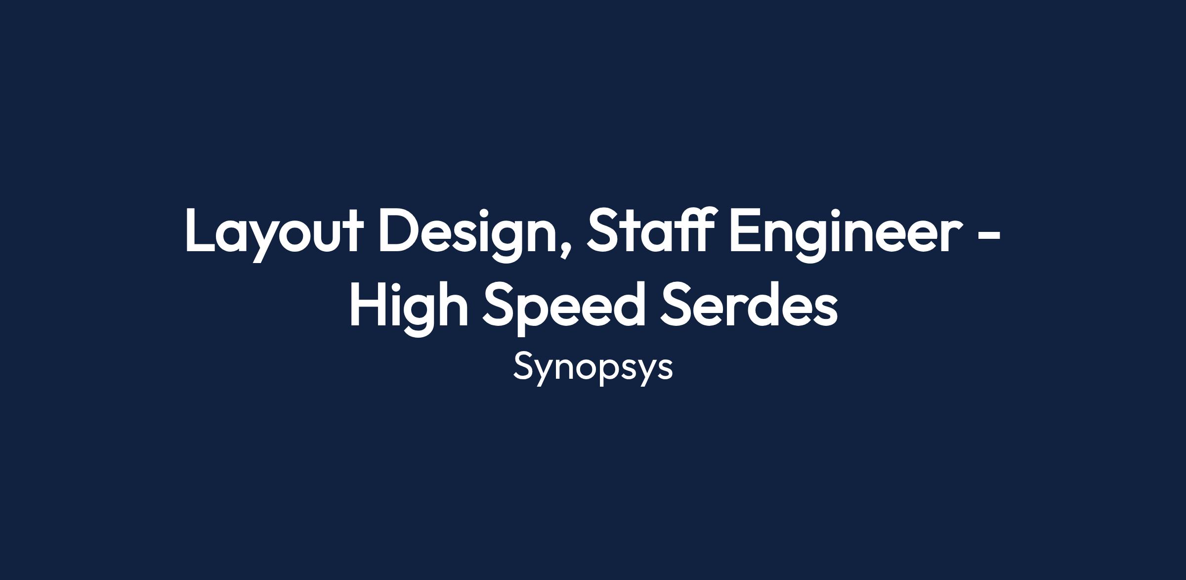 Layout Design, Staff Engineer - High Speed Serdes