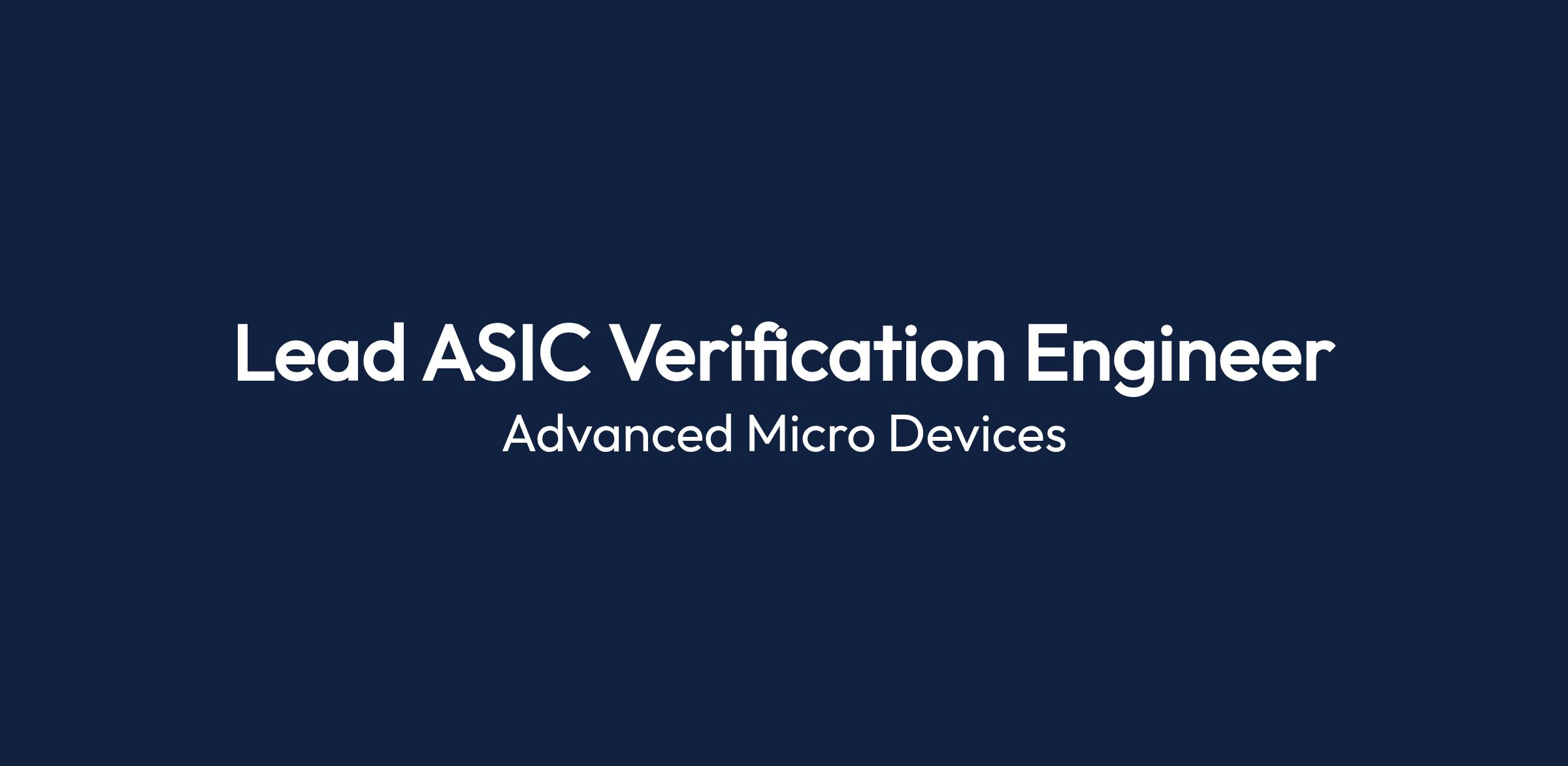 The Lead ASIC Verification Engineer is responsible for planning, building, and executing the verification of new and existing features for AMD CF IPs. The engineer's goal is to ensure that there are no bugs in the final design of the ASIC products.