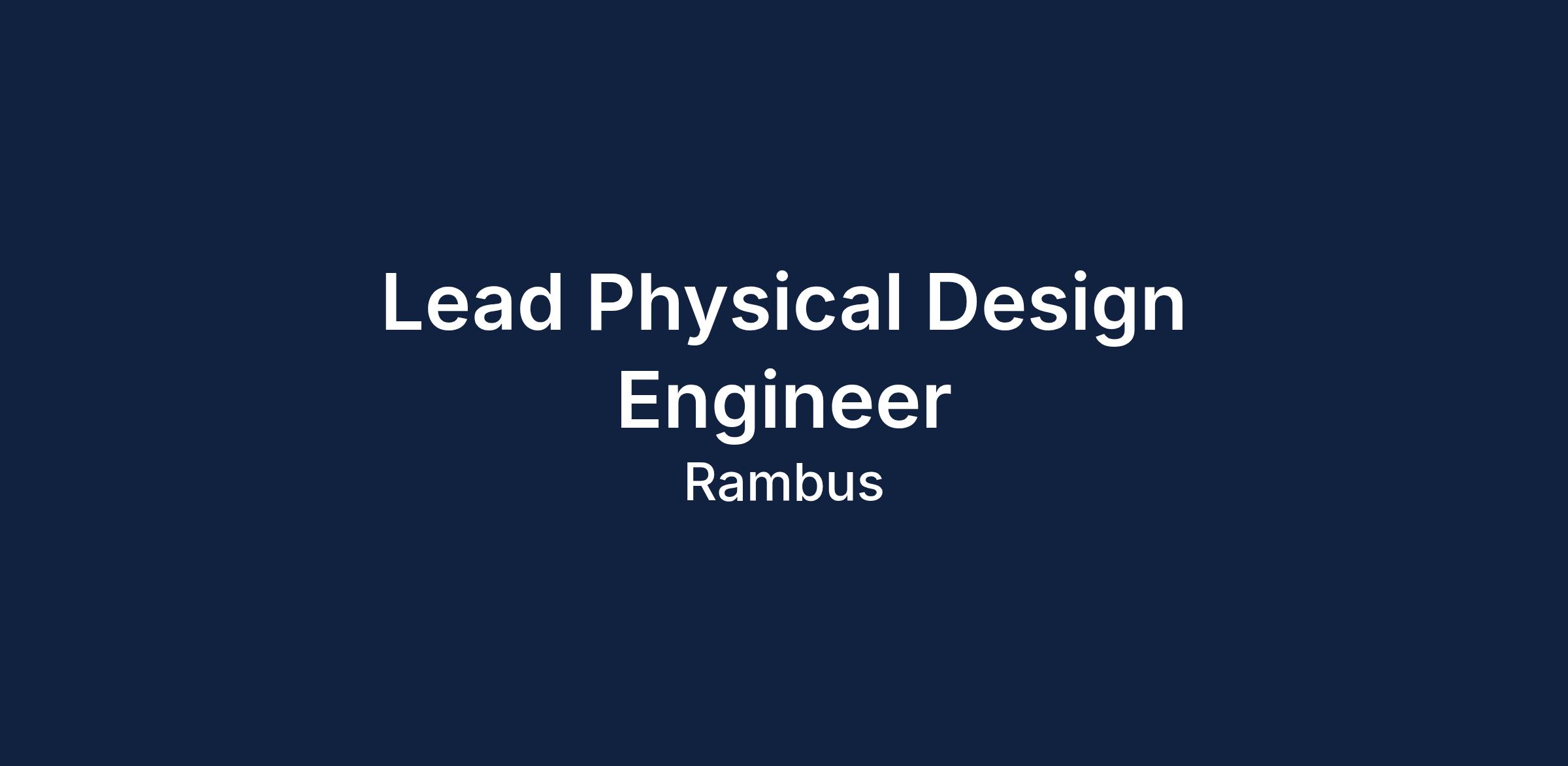 Rambus is looking for a Lead Physical Design Engineer to join their team in Bangalore. This role involves overseeing physical design activities and executing all aspects from floor planning to tape out.