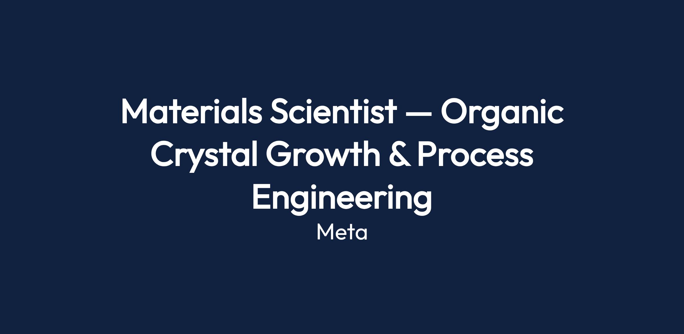 Materials Scientist — Organic Crystal Growth & Process Engineering