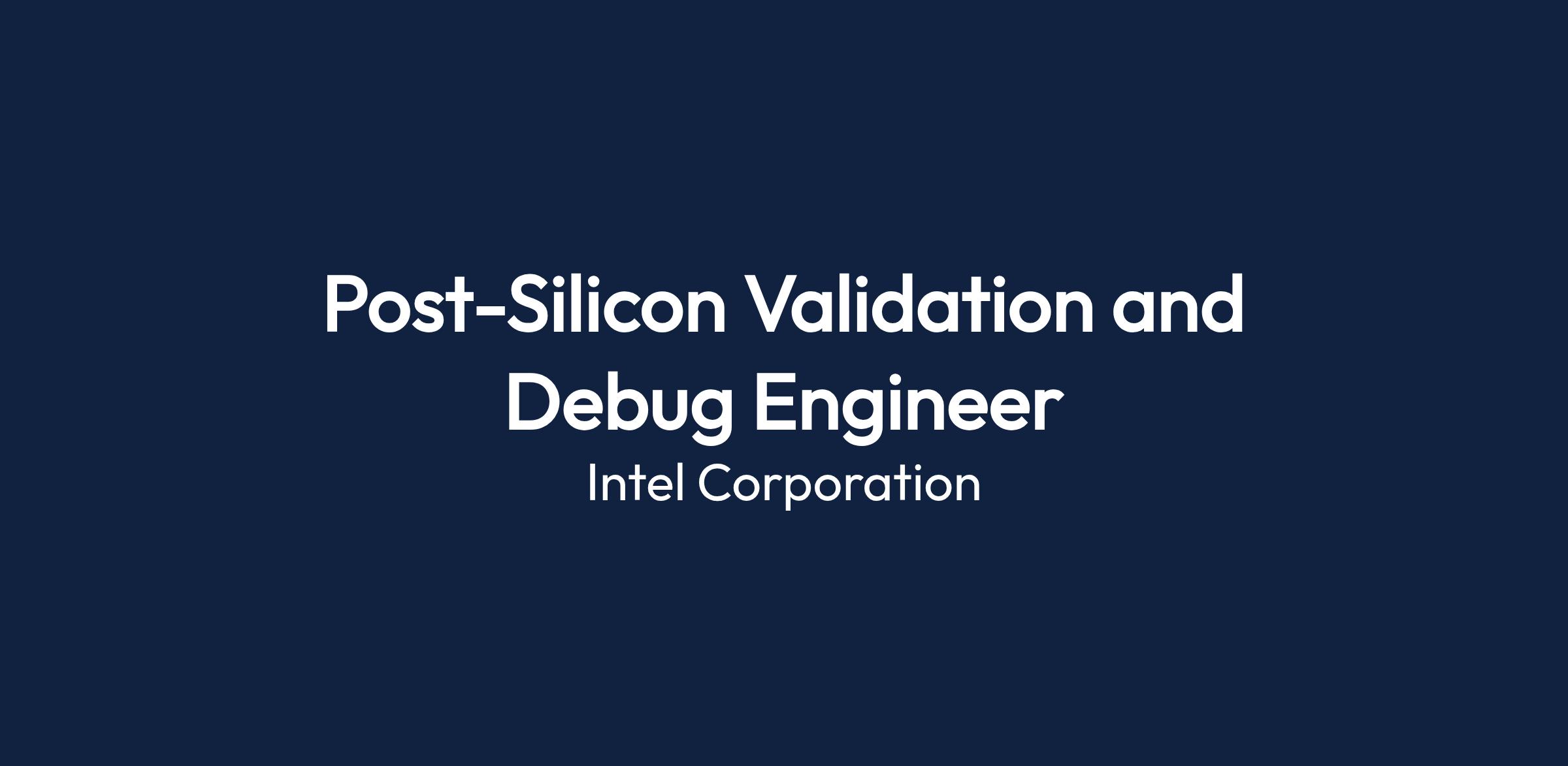 - Experience in post-silicon validation, pre-silicon verification, and relevant technologies.