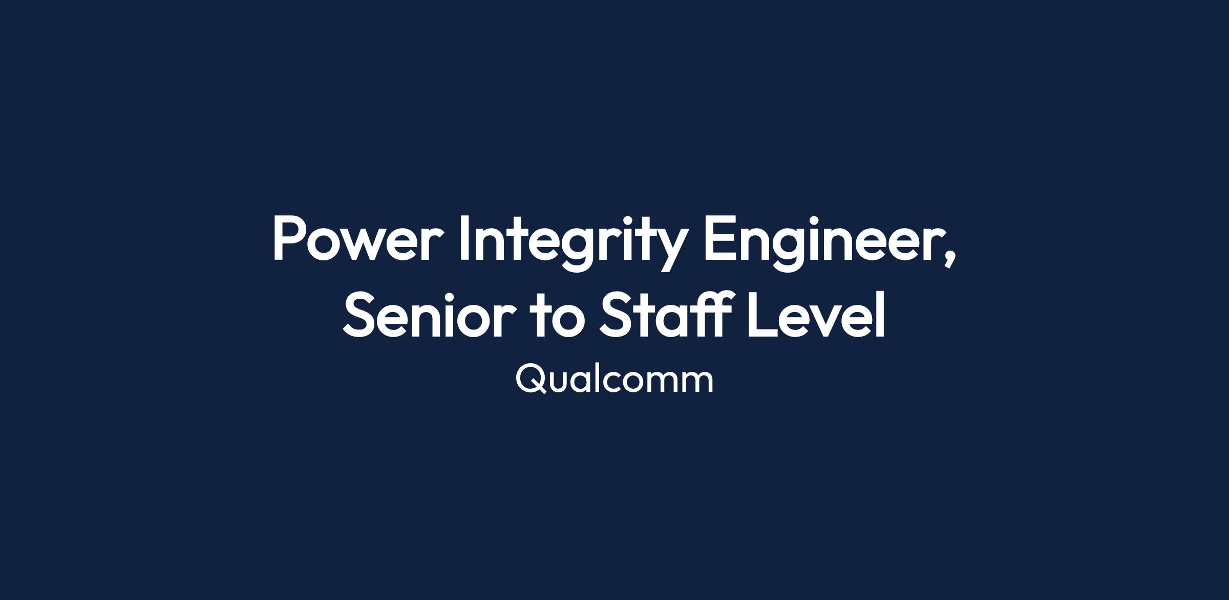 The Qualcomm Power Integrity group seeks a Power Integrity Engineer specializing in the analysis and optimization of power integrity for next-generation application processors, graphic processors, and modems across mobile, auto, and wireless LAN platforms.