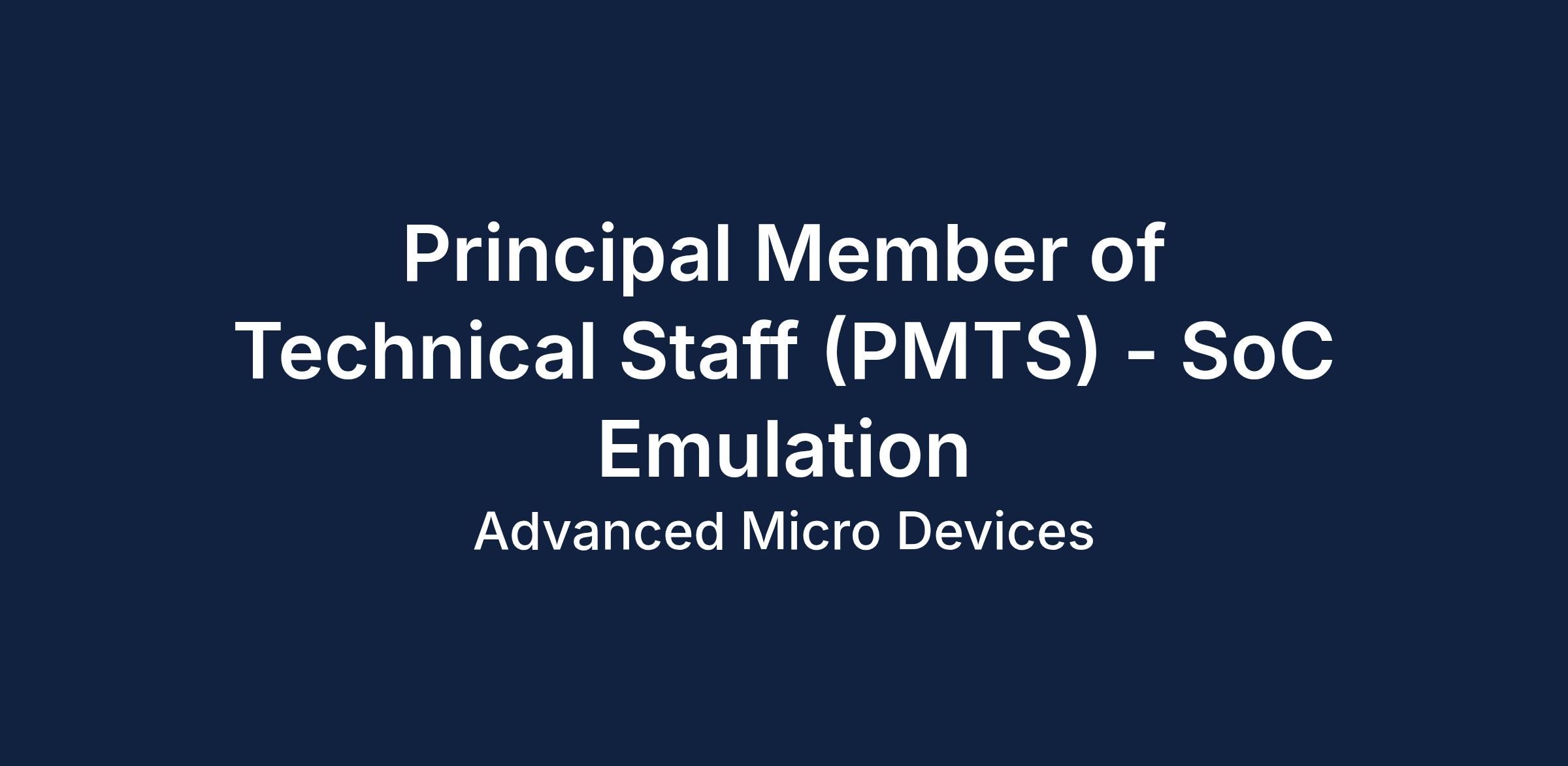 AMD is seeking a Principal Member of Technical Staff (PMTS) to lead SoC Emulation for next-generation AMD SOC products. This role is responsible for defining emulation strategy, driving technical execution, and delivering robust, high-performance emulation platforms that enable early software development and de-risk silicon.