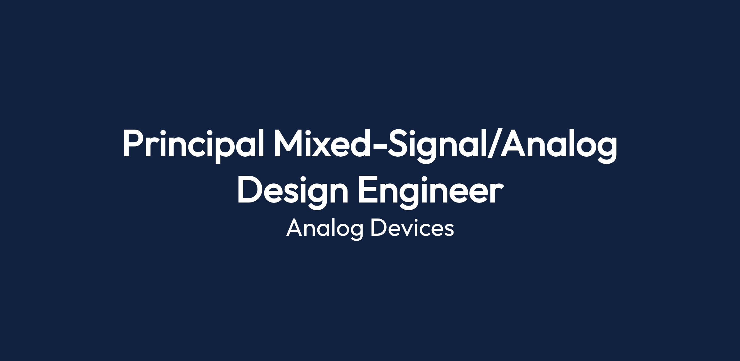 The Principal Mixed-Signal/Analog Design Engineer at Analog Devices will design high-performance mixed-signal ICs, ensuring compliance with quality standards while leading product development from concept to production release.