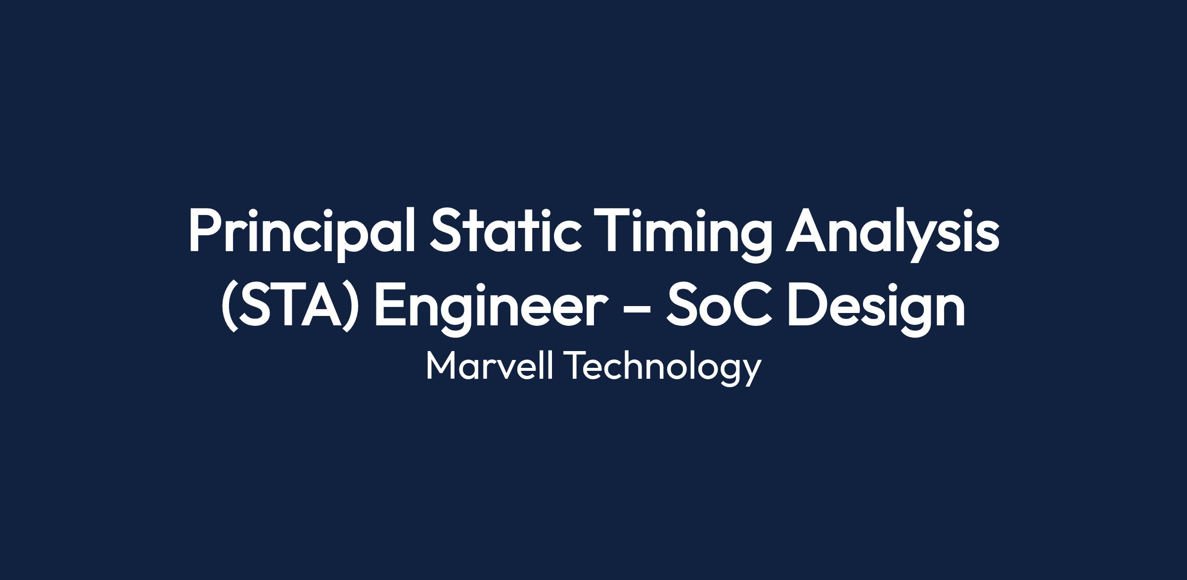 The DCE team at Marvell is seeking a Principal Static Timing Analysis (STA) Engineer to contribute to a wide range of innovative projects, utilizing the latest technology nodes. This role involves close collaboration with Physical Design, Design for Test (DFT), and other cross-functional teams.