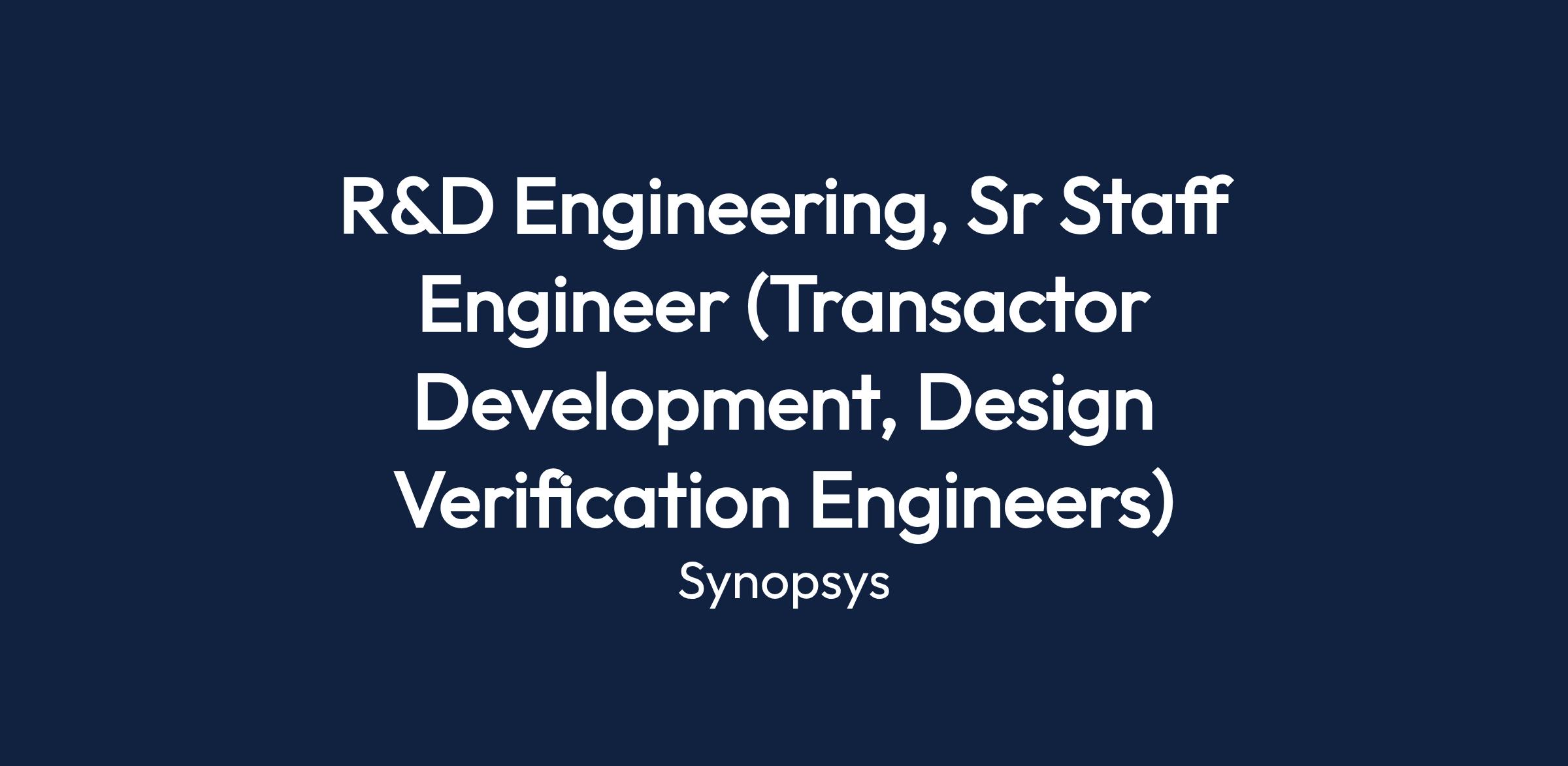 R&D Engineering, Sr Staff Engineer (Transactor Development, Design Verification Engineers)
