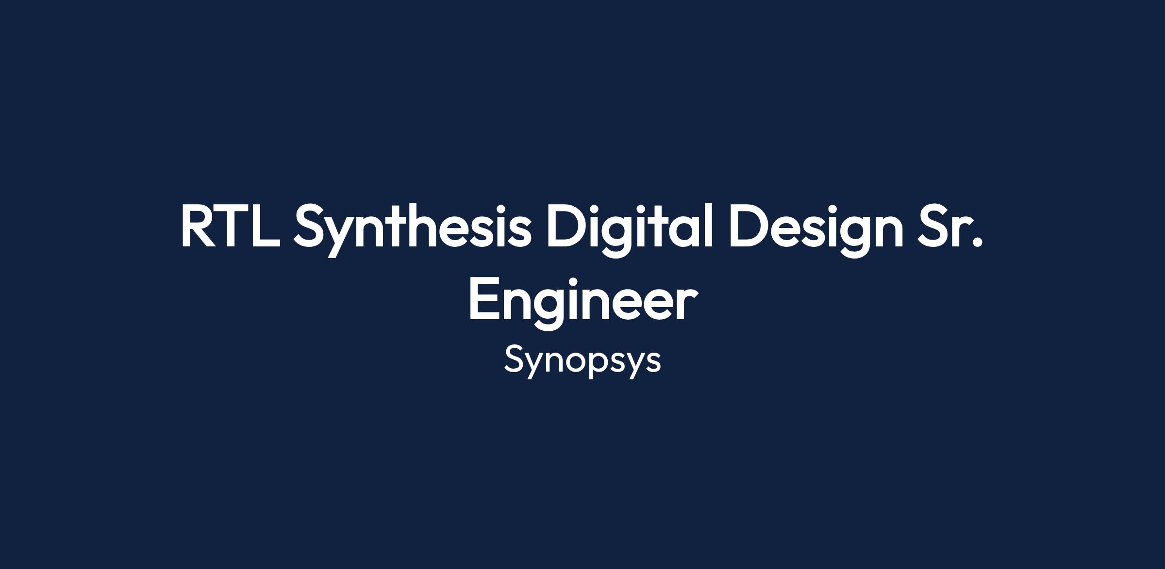 RTL Synthesis Digital Design Sr. Engineer