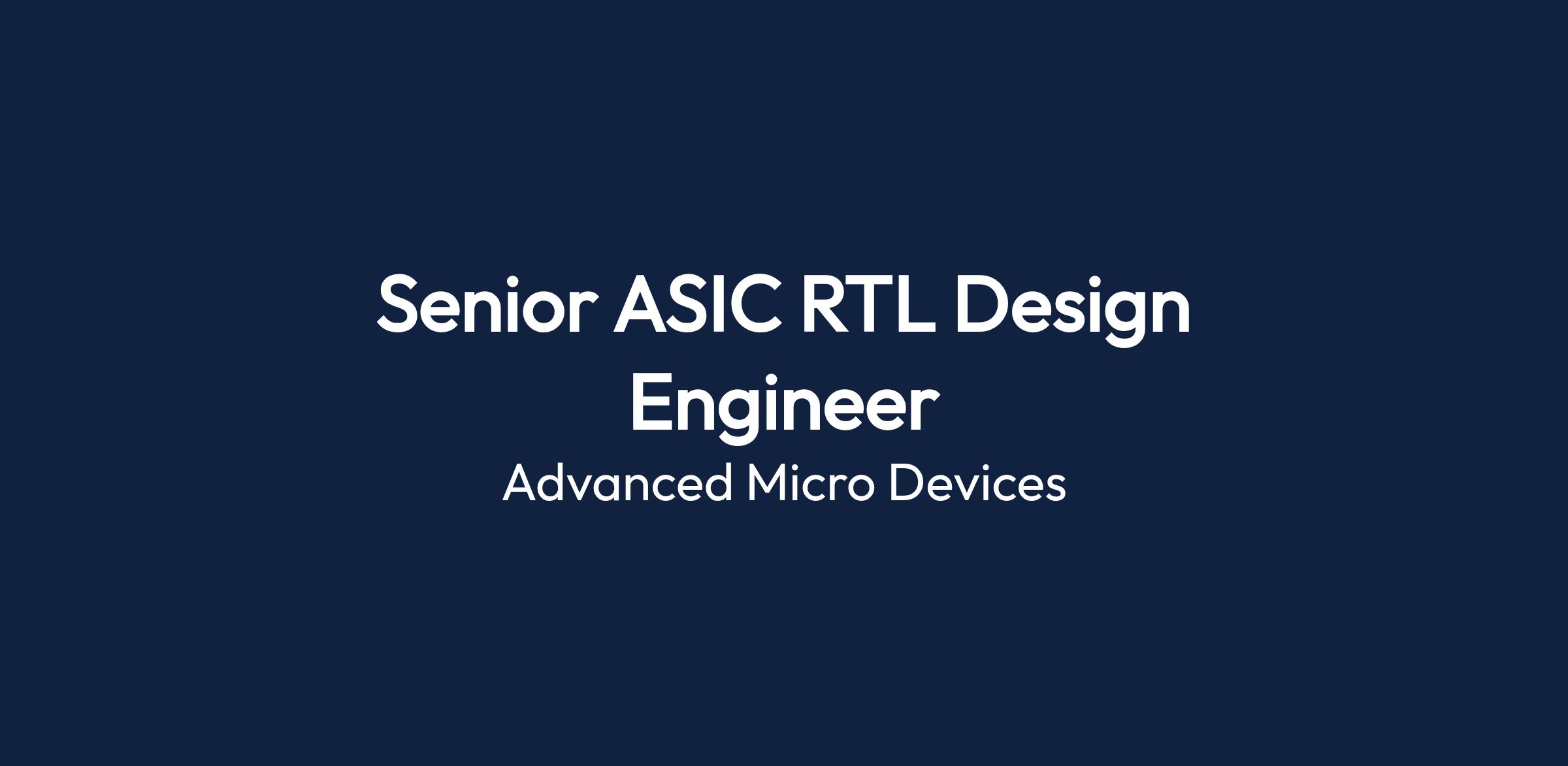This position requires a Senior ASIC RTL Design Engineer to participate in cutting-edge design work, engaging collaboratively with teams across architecture, design, and product engineering.