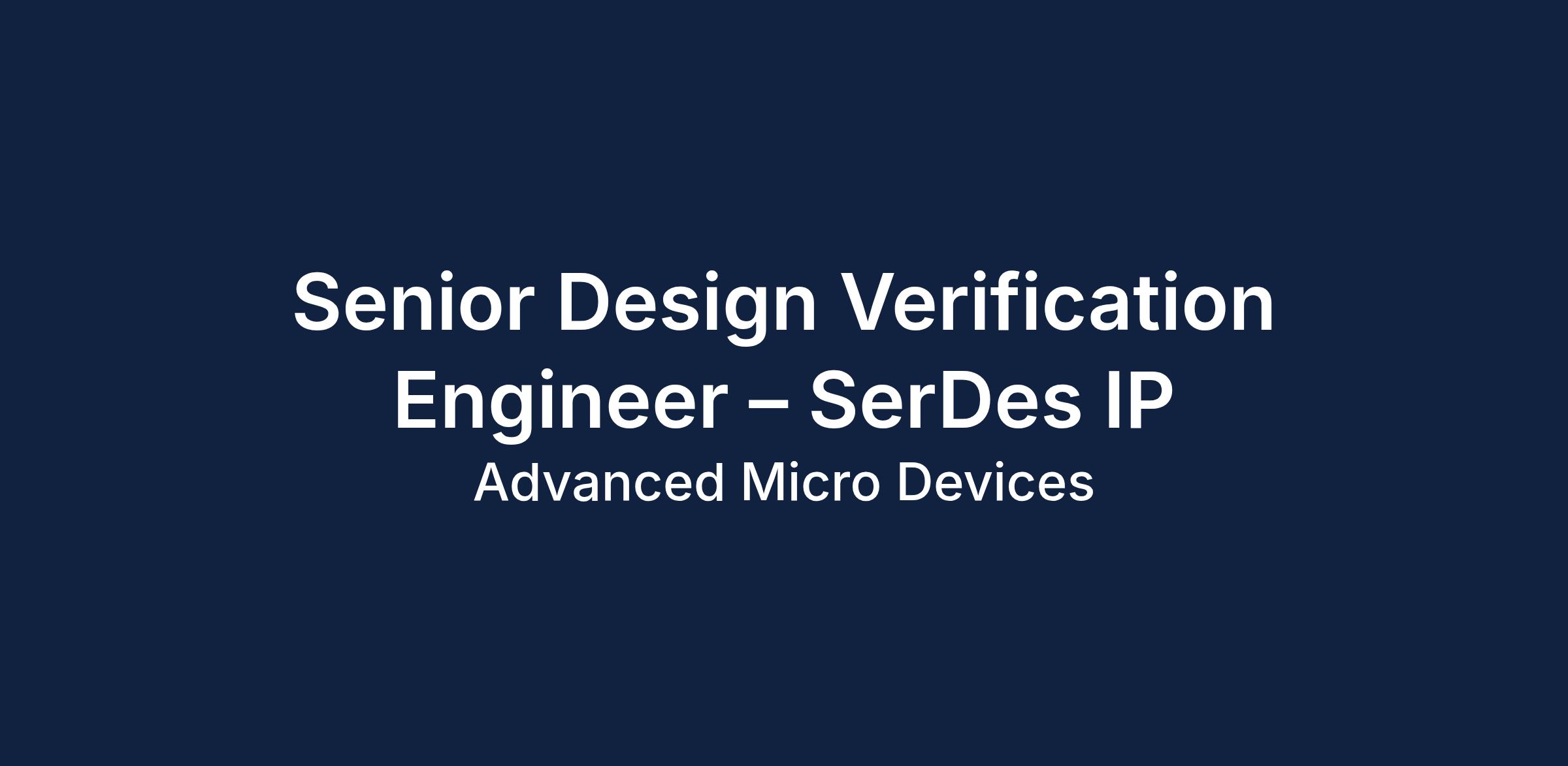 The role involves verifying complex SerDes digital and mixed-signal-adjacent subsystems in high-speed wireline transceivers at Advanced Micro Devices. The candidate will work closely with various teams to ensure correctness and high confidence across PVT, jitter/noise stress conditions, and protocol configurations using SystemVerilog and UVM.