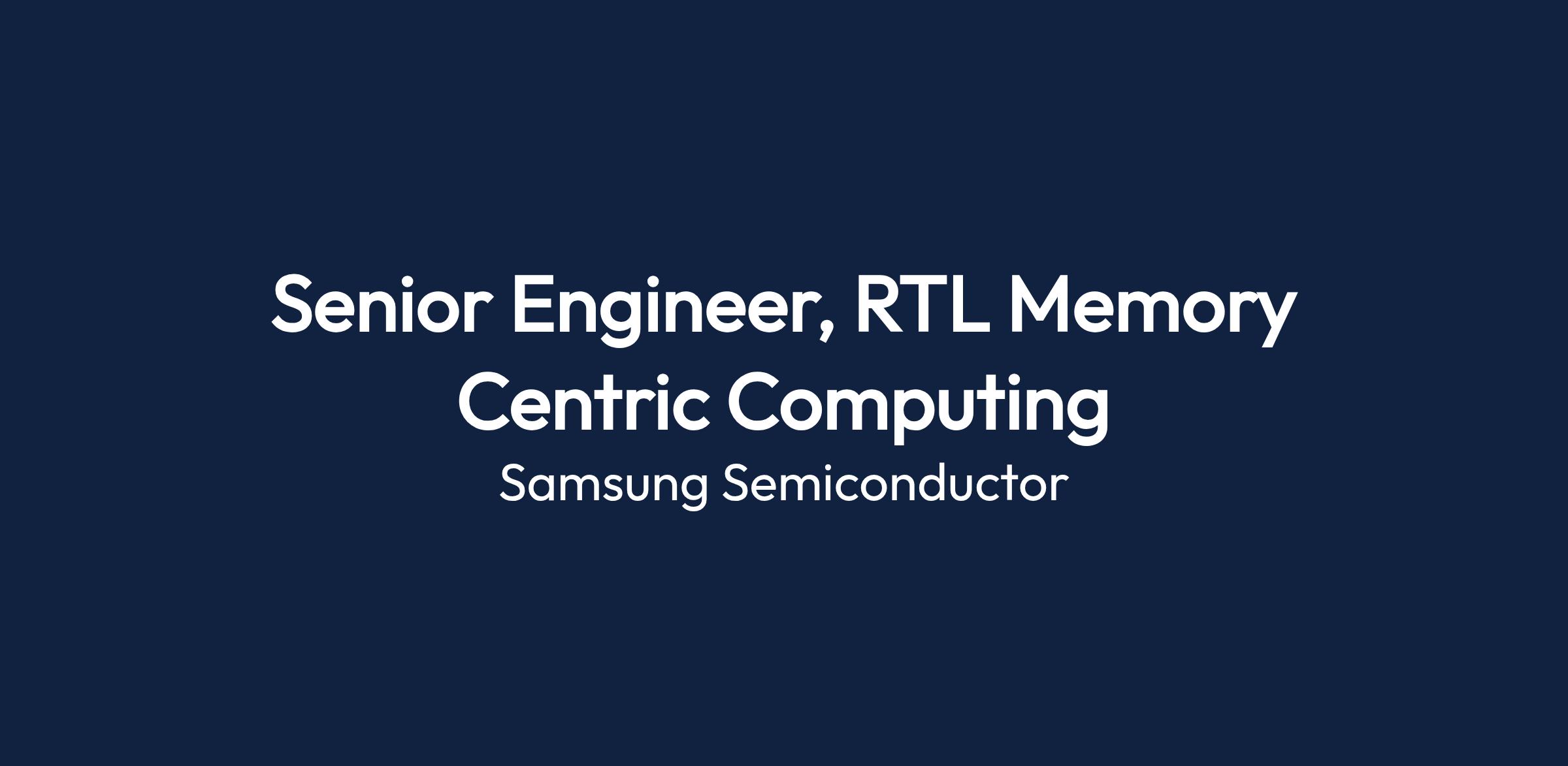 The Senior Engineer, RTL Memory Centric Computing will work in the AGI Computing Lab at Samsung Semiconductor. This role involves designing, prototyping, and optimizing next-generation AI systems through hardware-software co-design. The team focuses on memory computing systems to address the demands of AI/ML workloads.