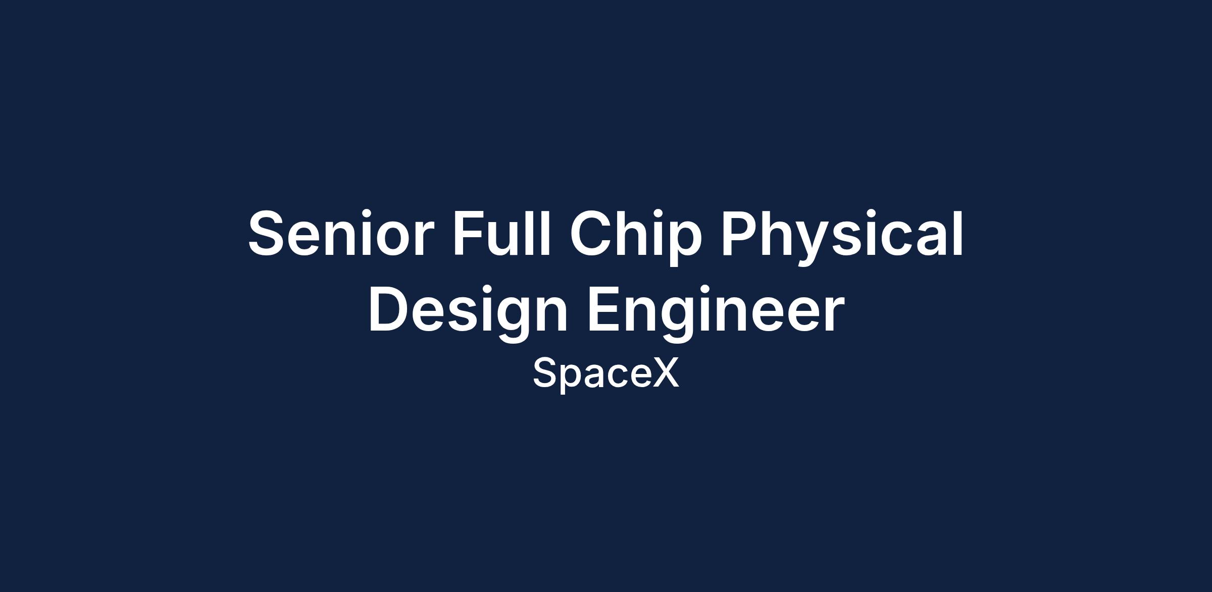 This position for a Senior Full Chip Physical Design Engineer requires a minimum of 5 years of industry experience, particularly in ASIC design and physical design flows.