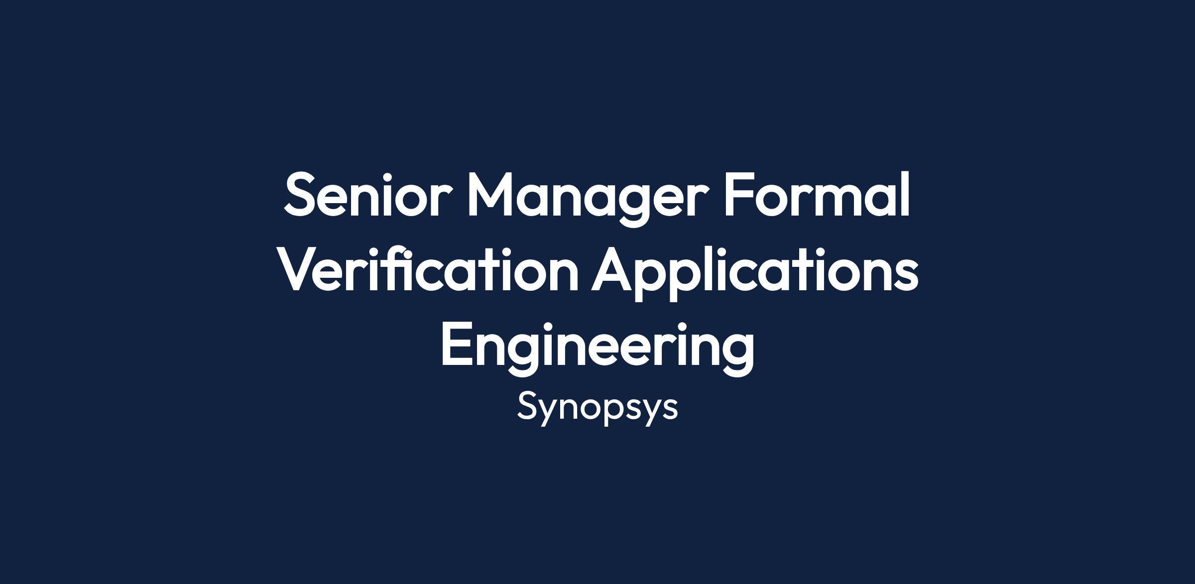 Senior Manager Formal Verification Applications Engineering