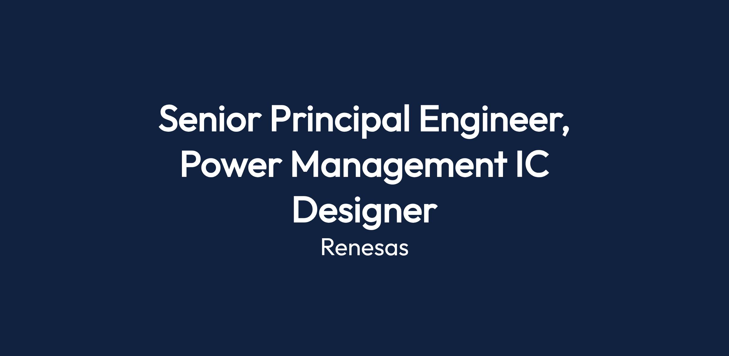 The Senior Principal Engineer will lead a design team focusing on Power Management IC development. The role involves product definition, transistor-level design, and validation of innovative power management products.