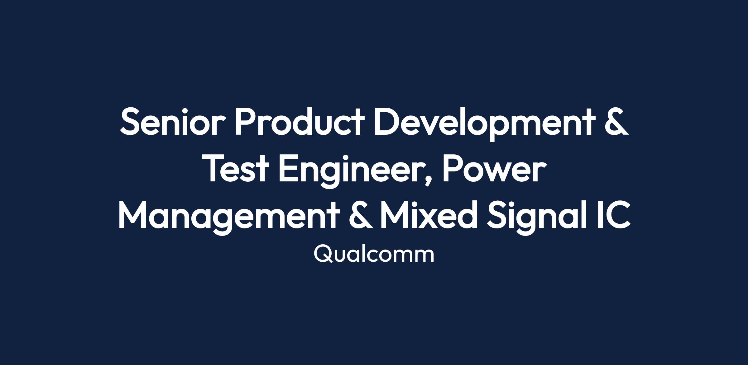 This position is part of Qualcomm's Product Development and Test Engineering group, focusing on test solutions for highly integrated power management, analog, and mixed signal ASICs. The team collaborates closely with various departments to ensure successful commercialization and support for QCT's products.