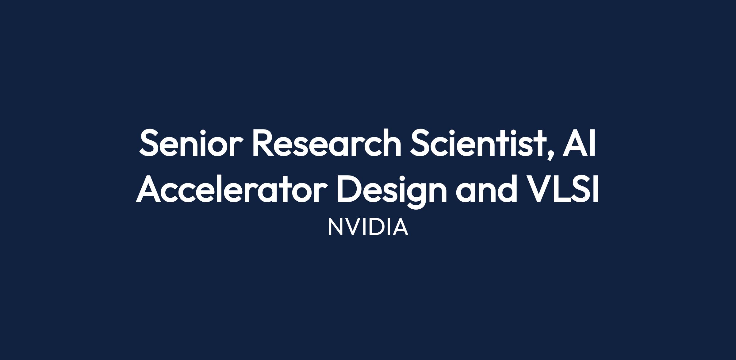 NVIDIA is seeking a Senior Research Scientist to drive groundbreaking research in AI hardware/software co-design, AI Hardware Accelerator Architecture, IC design methodology, and VLSI design.
