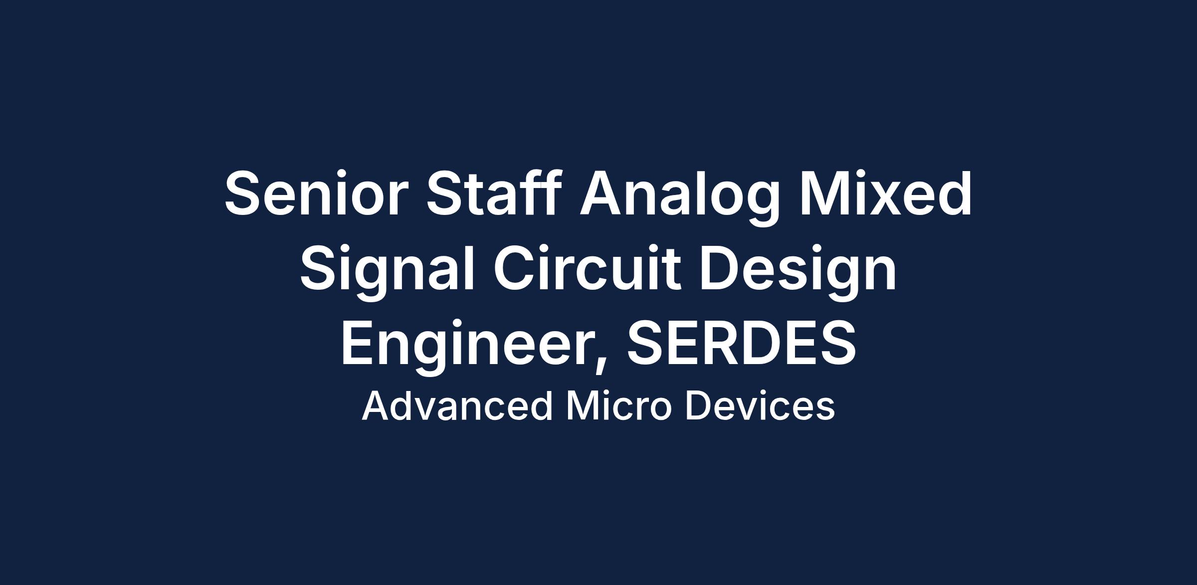Senior Staff Analog Mixed Signal Circuit Design Engineer, SERDES