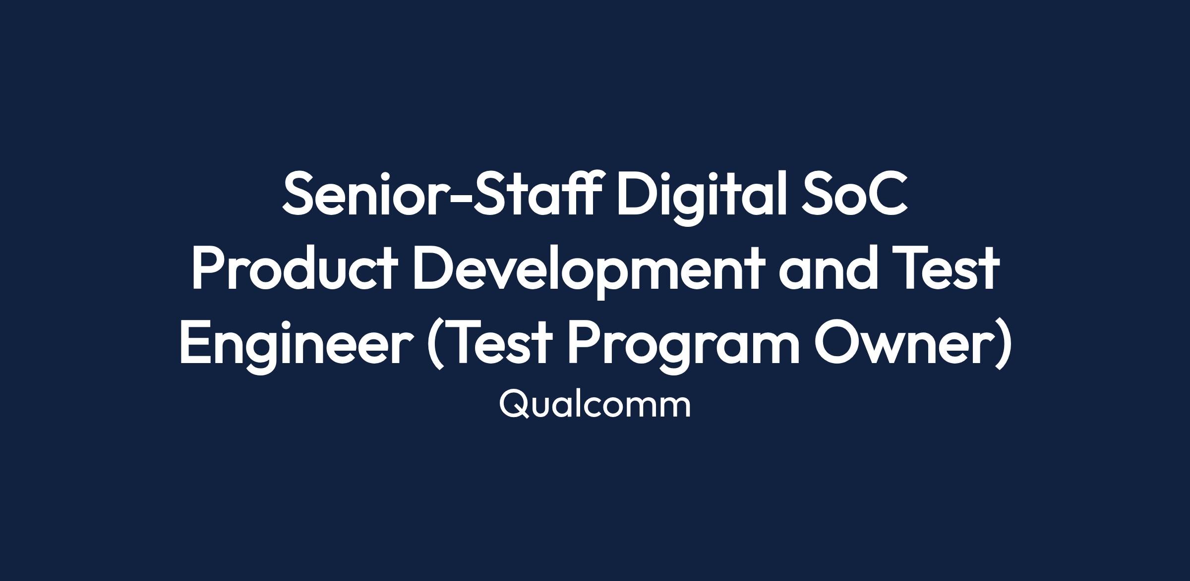 Senior-Staff Digital SoC Product Development and Test Engineer (Test Program Owner)