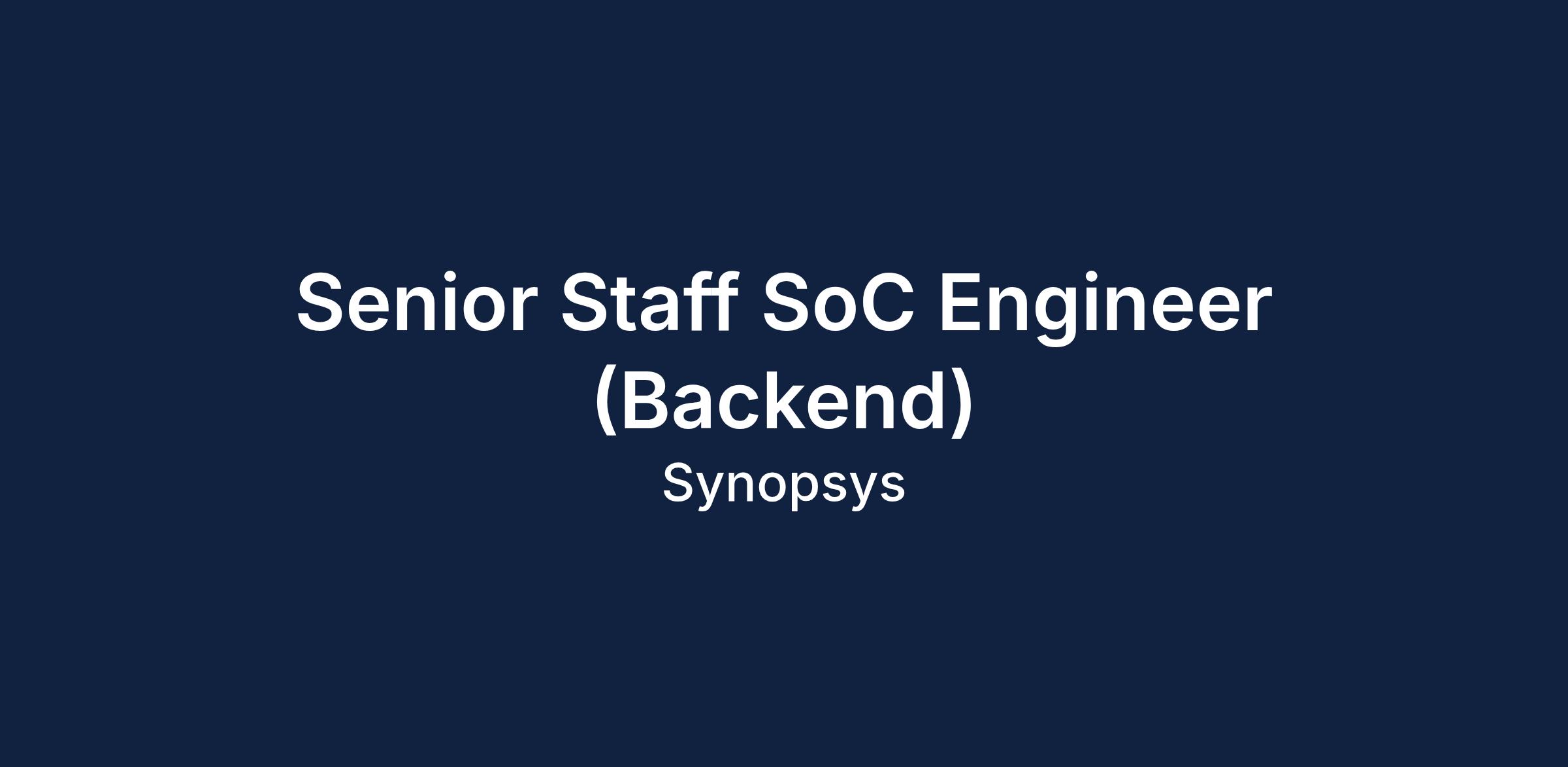 The Senior Staff SoC Engineer (Backend) will be responsible for designing and implementing backend solutions for complex System-on-Chip (SoC) architectures. You will work together with cross-functional teams to ensure optimal performance and integration of SoC components.