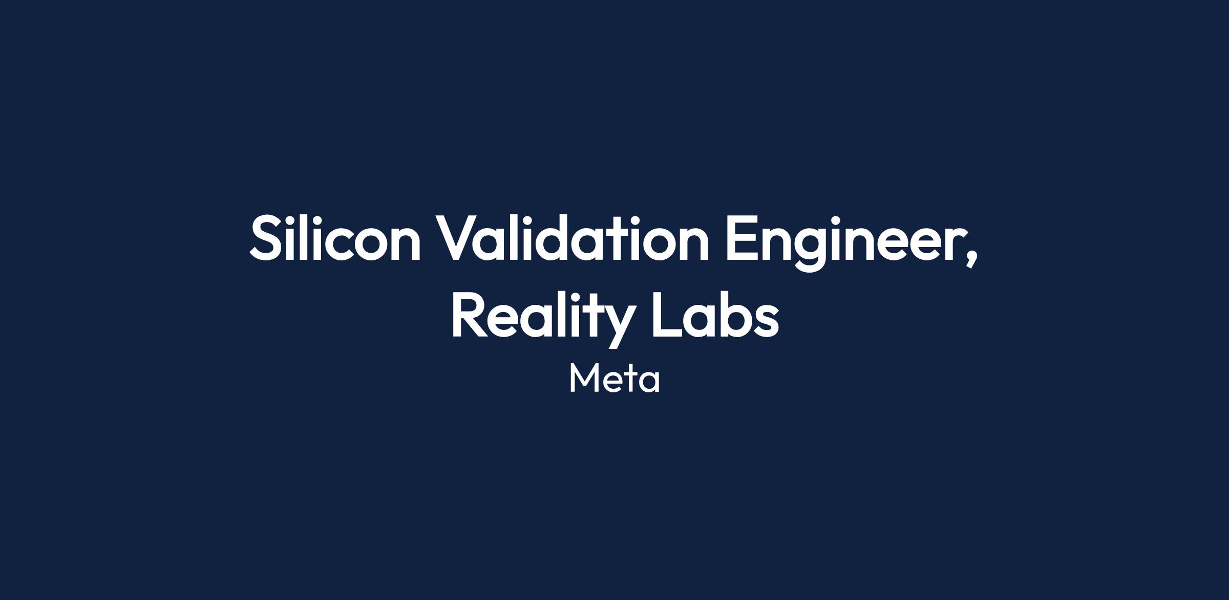 Silicon Validation Engineer, Reality Labs