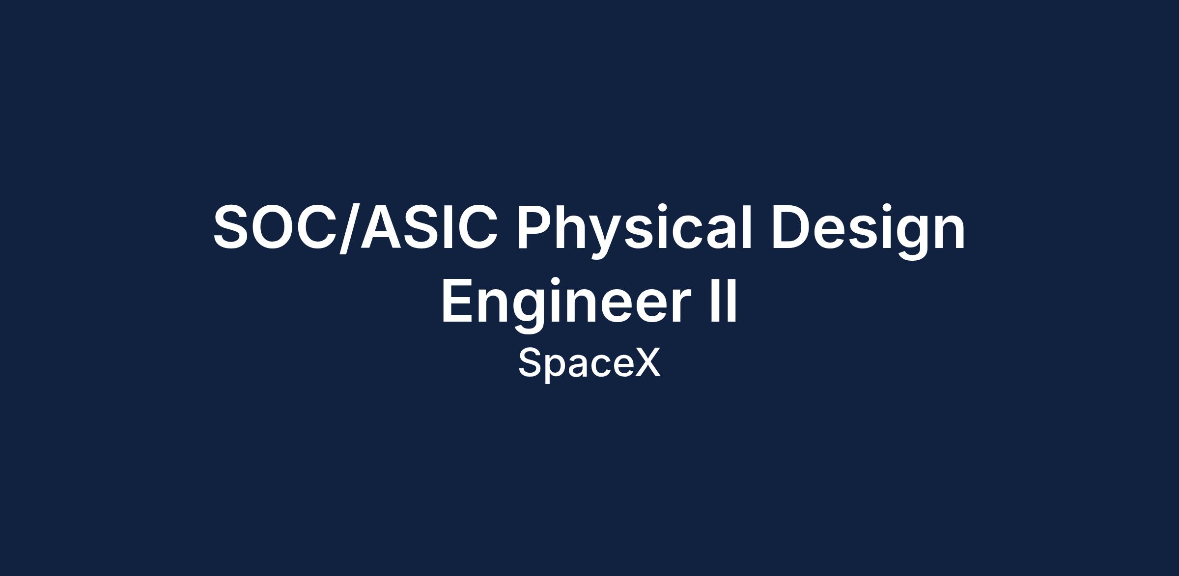The SOC/ASIC Physical Design Engineer II position at SpaceX involves developing next-generation ASICs for deployment in space and ground infrastructures. The role requires a proactive and collaborative engineer who will work with various cross-disciplinary teams to enhance connectivity through advanced technologies.