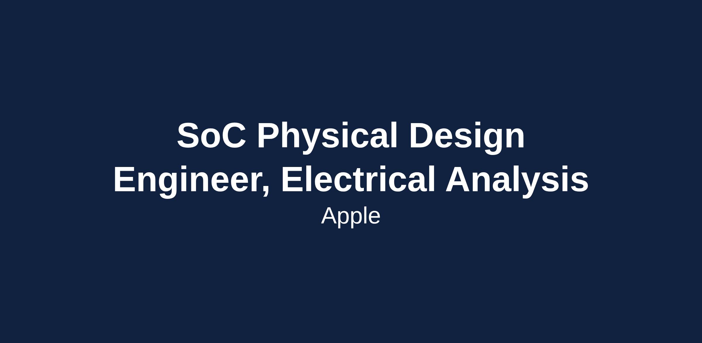 The SoC Physical Design Engineer will focus on electrical analysis and verification within Apple's System on Chip (SoC) team. This role involves ensuring the performance and integrity of chip designs through rigorous analysis and collaboration with multiple engineering teams.