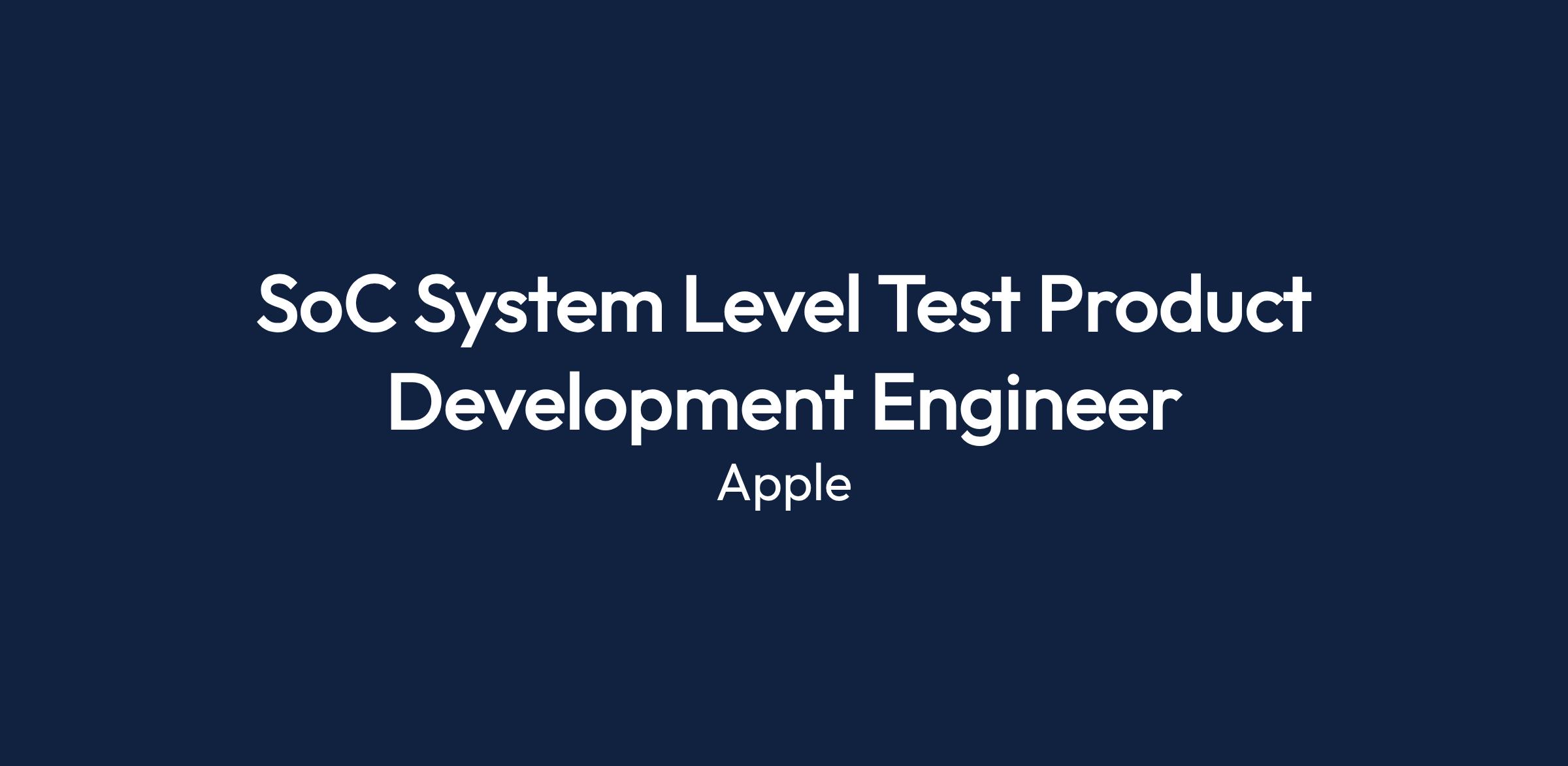 - Develop System Level Test (SLT) programs from NPI to HVM for Apple SOCs.