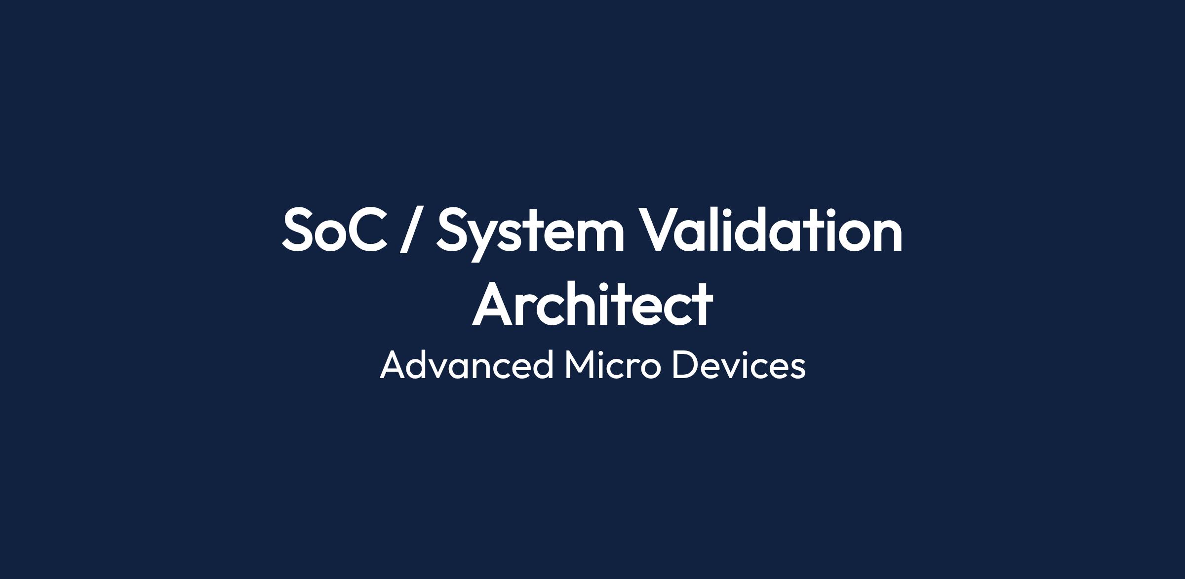 The SOC / System Validation Architect at Advanced Micro Devices is responsible for defining, designing, and leading the implementation of the validation architecture for SoCs. This position is pivotal in aligning validation strategies with product requirements and ensuring comprehensive pre- and post-silicon validation processes.