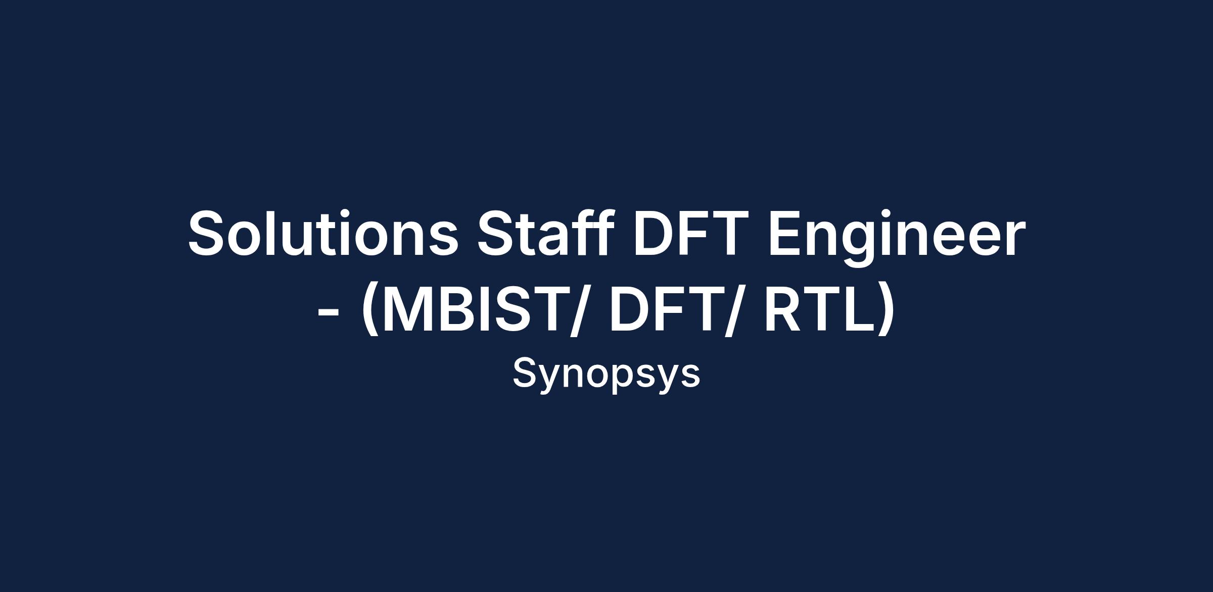 As a Solutions Staff DFT Engineer at Synopsys, you will work on advanced technologies and methodologies related to Design for Test (DFT) within the fields of MBIST, DFT, and RTL design. You will play a crucial role in ensuring the efficiency and effectiveness of DFT implementation in our products.