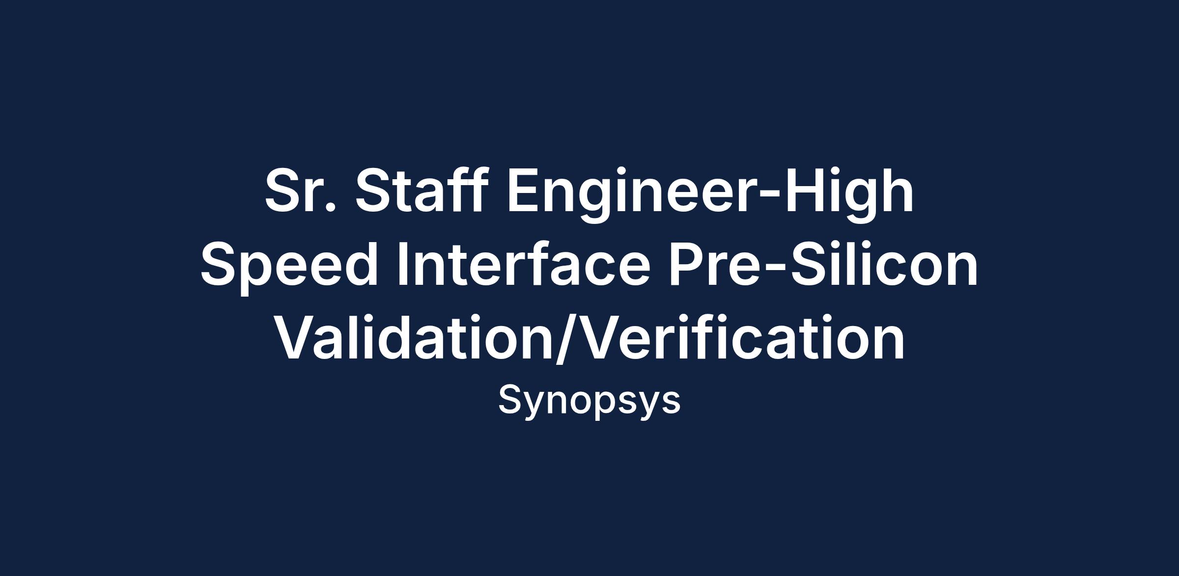 This role involves pre-silicon validation and verification of high-speed interfaces, focusing on high-performance engineering tasks.