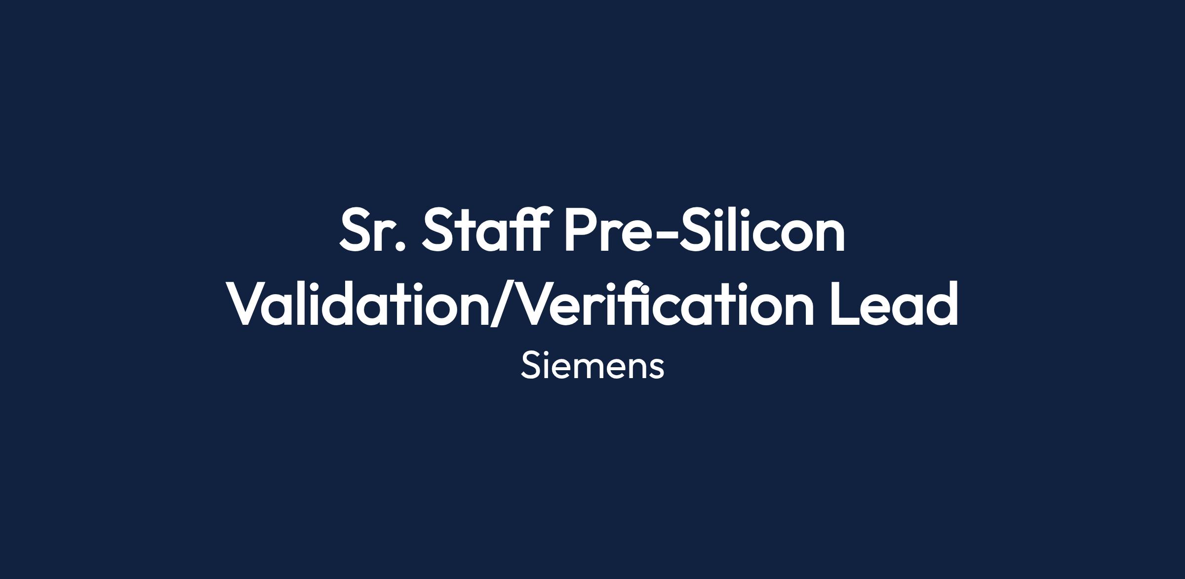 The Sr. Staff Pre-Silicon Validation/Verification Lead at Siemens is responsible for leading system-level validation for high-speed interconnect solutions. This role focuses on developing and executing verification strategies across emulation and FPGA prototyping platforms.
